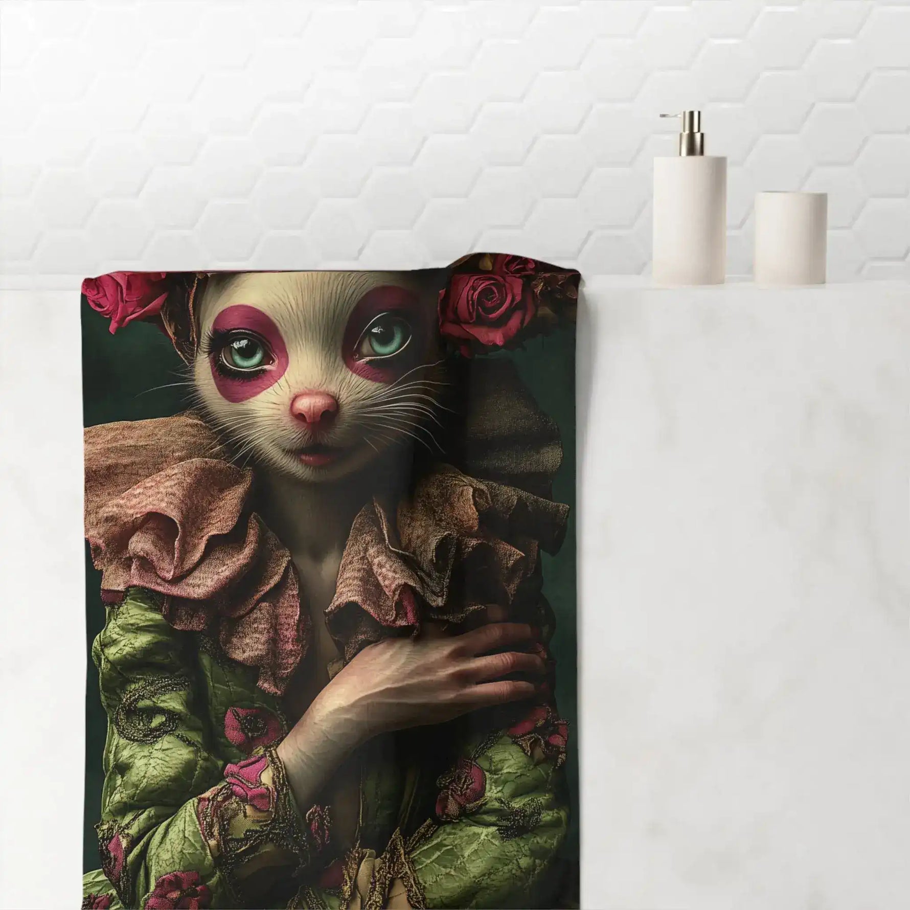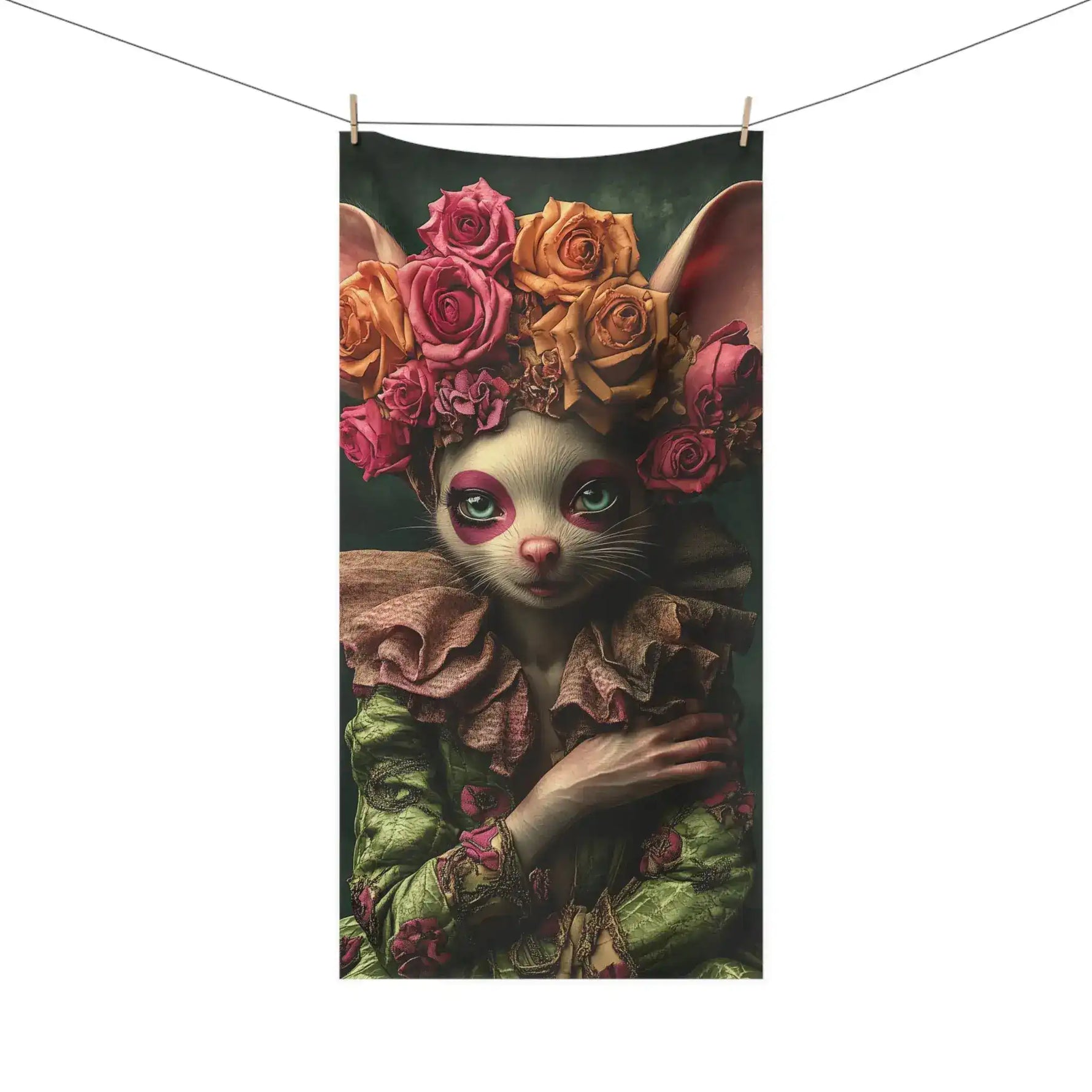 Floral Crowned Mouse in Elegant Green Gown Bath Towel
