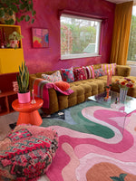 The Best-selling Floral Wavefront Hand-Tufted Rug combines the peaceful beauty of a flower garden with the lively dance of colorful waves. Take a walk along a calm beach at dawn, where soft waves lap at your feet and bright flowers bloom along the edge, painting the horizon with their colors. This rug, which was made by hand from the best wool, brings the peace of nature into your home. It is the perfect mix of elegance and calm. This rug will turn your room into a peaceful haven of natural beauty and waves, perfect for people who love the mix of land and sea.