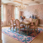 The Garden of Legends Rug is a piece of art that combines the magic of myths and the beauty of nature. The flower petals are soft blue and pink, and the leaves are a deep, rich green. It takes a while, but something beautiful that looks like a dragon starts to appear among the flowers. This makes the scene feel mysterious. This rug is a creative work of art that will last for a long time. Vine that has been woven together in a fancy way makes up the edge. You can add a touch of magic and class to your rooms with it.
