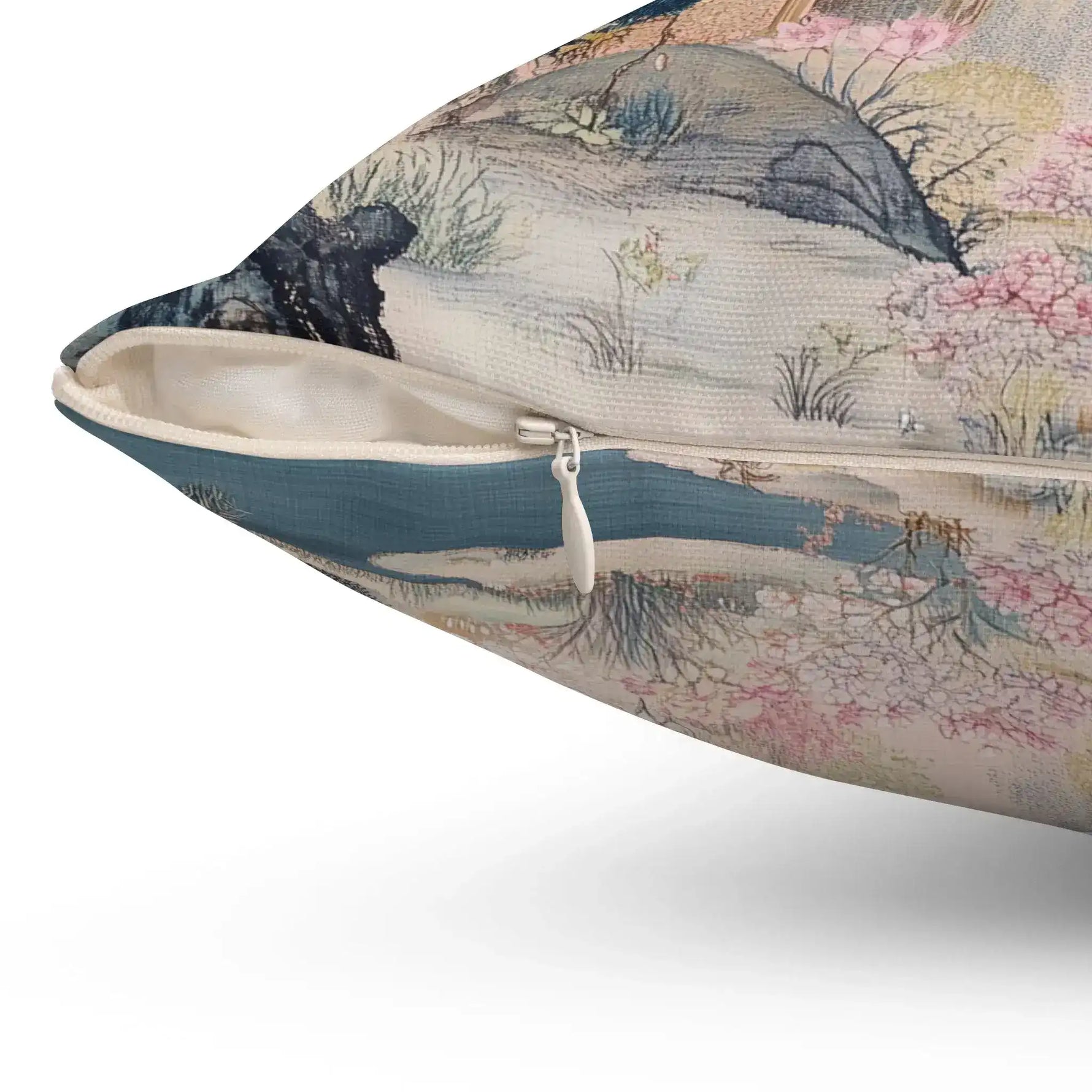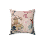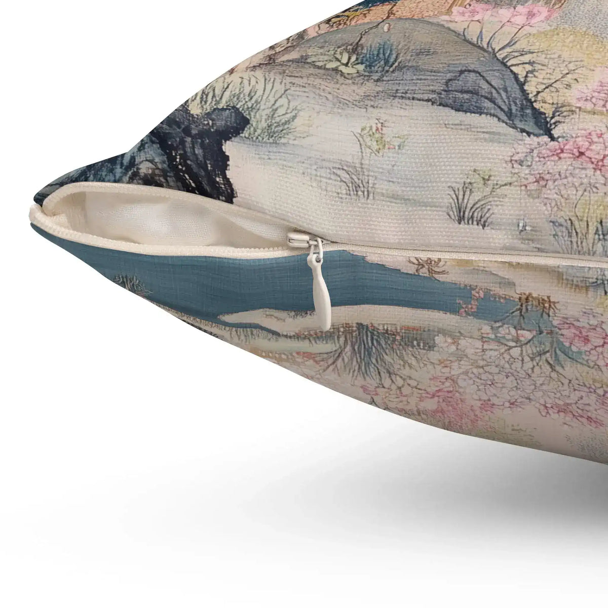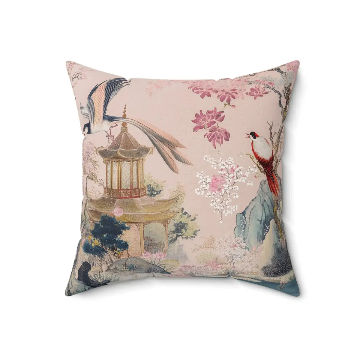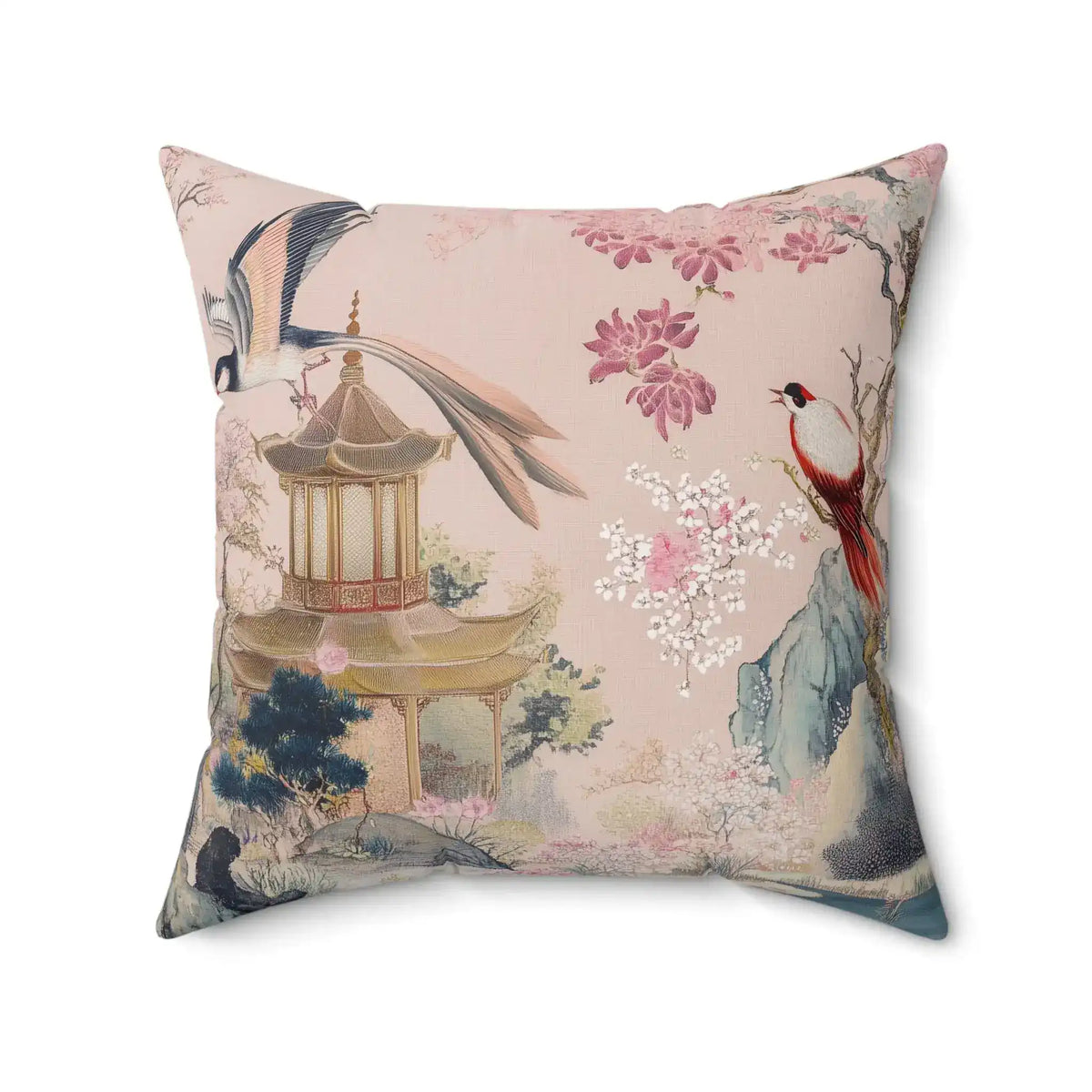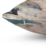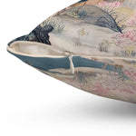 Elevate your space with the ethereal beauty of this Art Nouveau-inspired throw pillow. Featuring a dreamy scene of a young woman gliding through the sky on an intricately designed pink magic carpet, this artwork blends soft pastels with elegant details for a truly enchanting touch. Perfect for adding a whimsical yet sophisticated charm to any living space or bedroom.