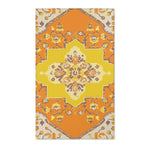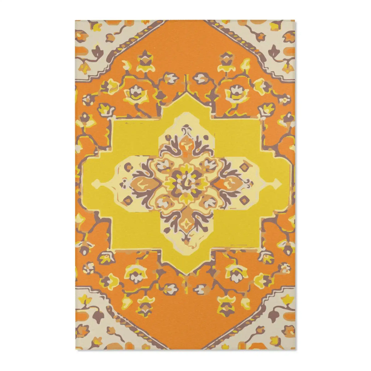 This accent rug features a bold, geometric sunburst design in black, red, and beige. The pattern radiates energy and vibrance, making it a striking addition to any room. The contrasting colors and dynamic shapes create a visually captivating piece that effortlessly enhances modern and artistic home decor.