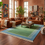 Handmade Reversible Cotton Fringed Geometric Blue Bordered Rug