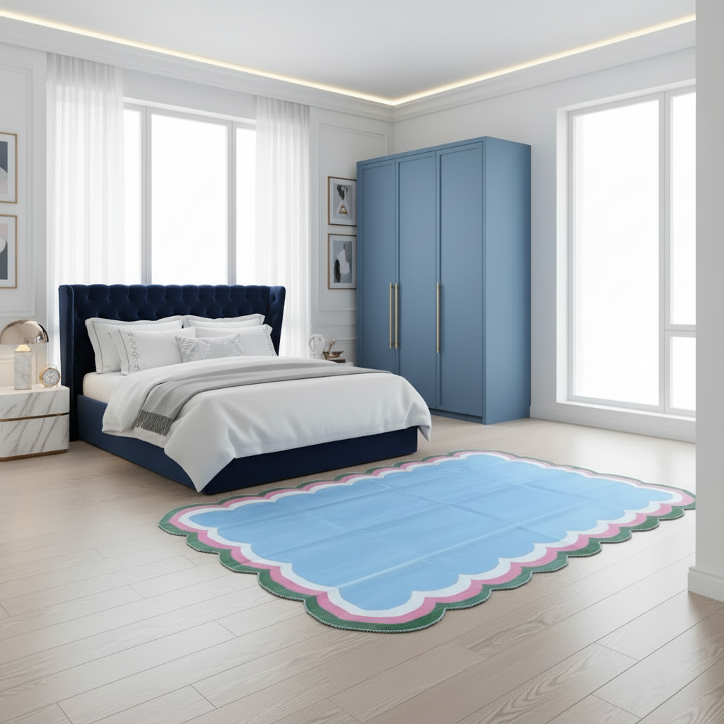 Handmade Scalloped Cotton Area Rug - Light Blue