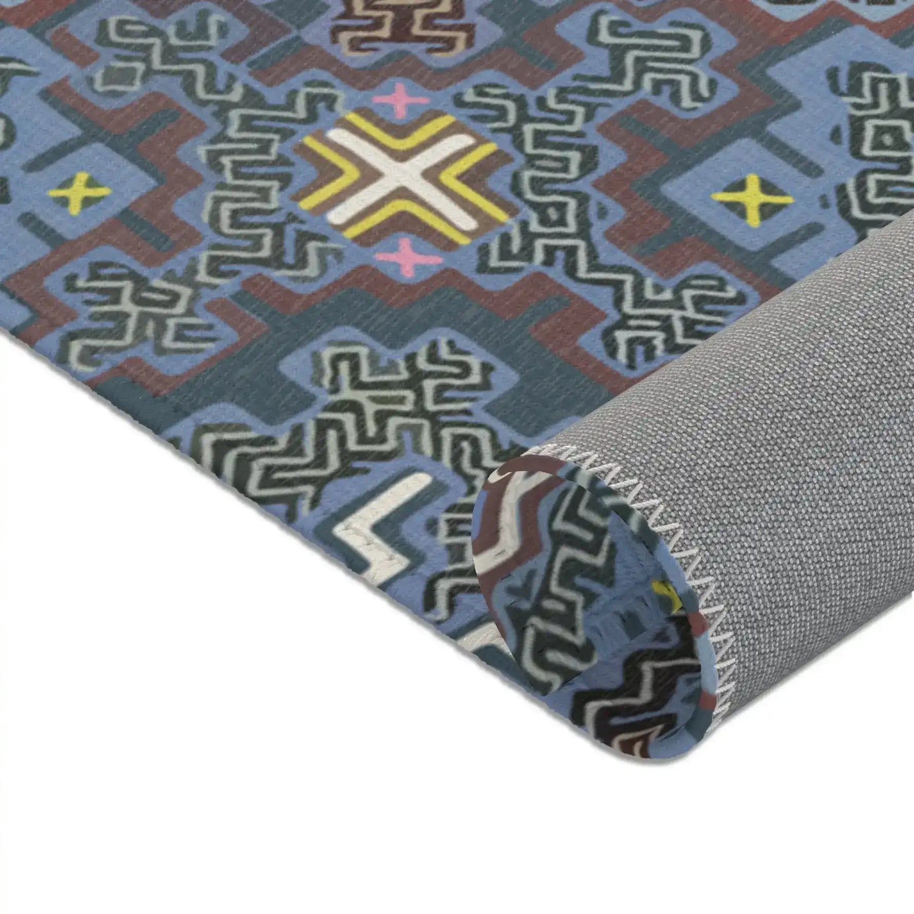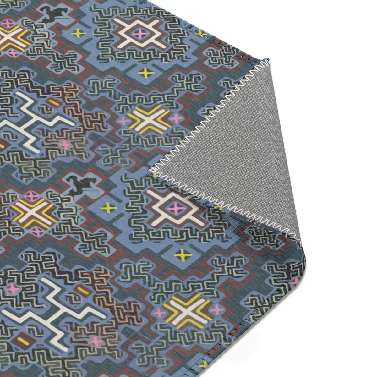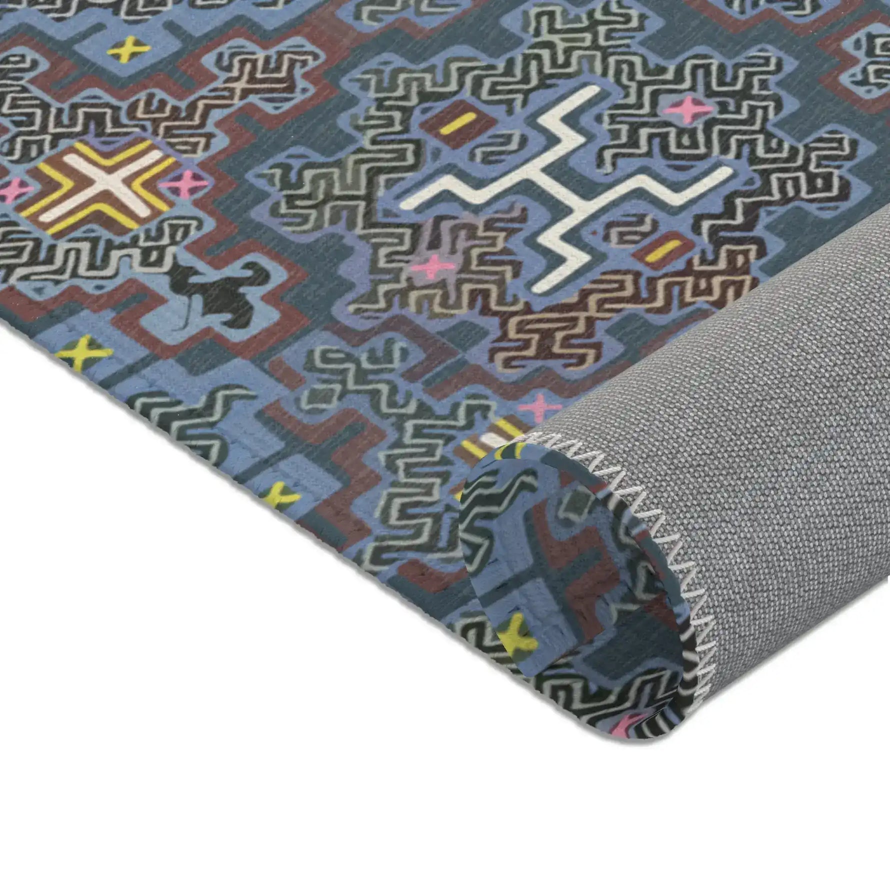 This accent rug features a bold, geometric sunburst design in black, red, and beige. The pattern radiates energy and vibrance, making it a striking addition to any room. The contrasting colors and dynamic shapes create a visually captivating piece that effortlessly enhances modern and artistic home decor.