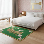 Lotus and Indian Tiger Hand Tufted Wool Rug - Green