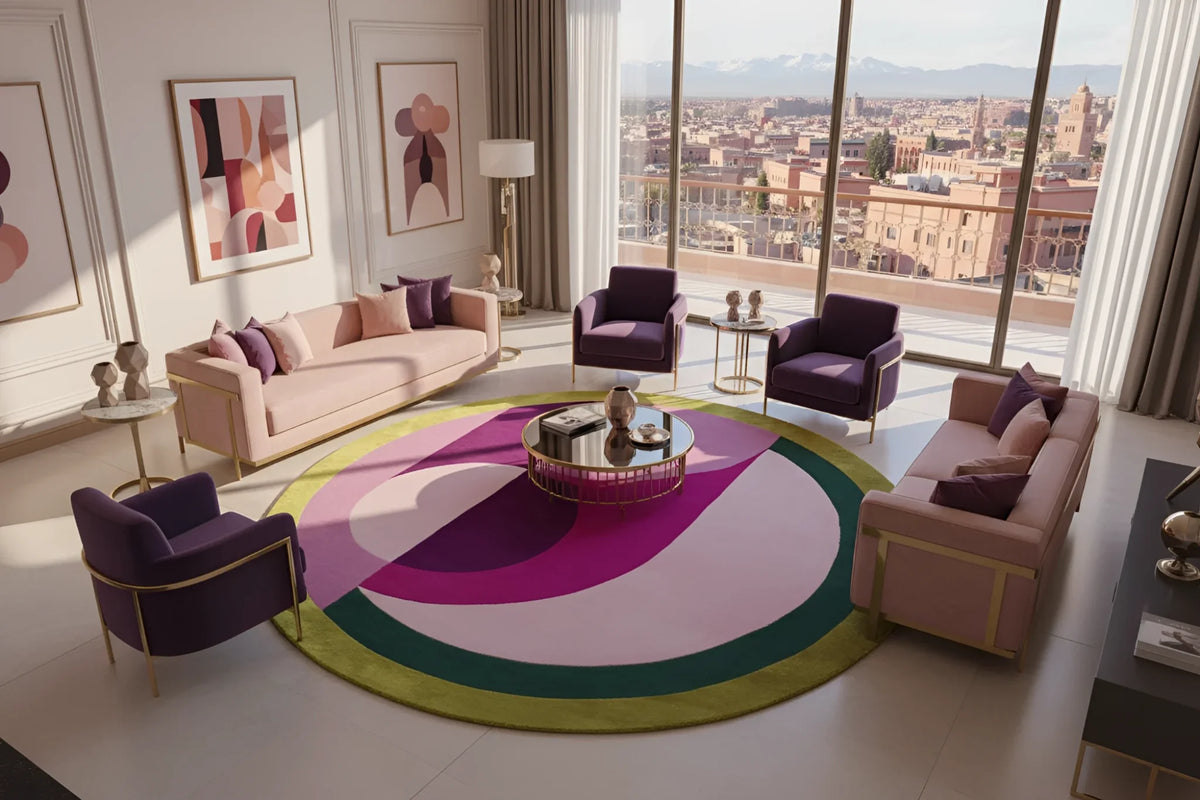 If you put the Maia Golden Pink Round Hand-Tufted Wool Rug in your sitting room, it will look classier. Handcrafted items from the past blend seamlessly with modern design elements. Talented Indian artists handcrafted this rug. The way the pink and gold colors go together makes the room feel warm and friendly. It's made from soft New Zealand wool and will last a long time. The round shape and simple designs of the rug give it a modern look. You can place a wide variety of furniture on it. The back doesn't slip, so it's safe to use in places where many people walk.