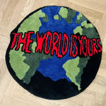 Make a powerful statement with this opulent bath mat, which features the iconic phrase "THE WORLD IS YOURS" in striking red lettering. The luxurious texture of the rug provides a soft and plush feel underfoot, while the dynamic world map-inspired backdrop adds a touch of worldly sophistication. This is more than just a bath mat; it's a daily reminder to embrace your power and ambition, making it a truly unique and lavish addition to any home.