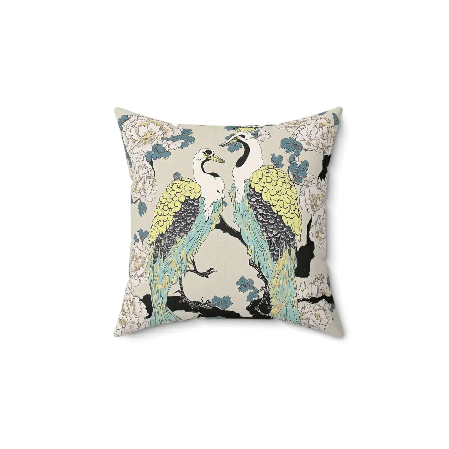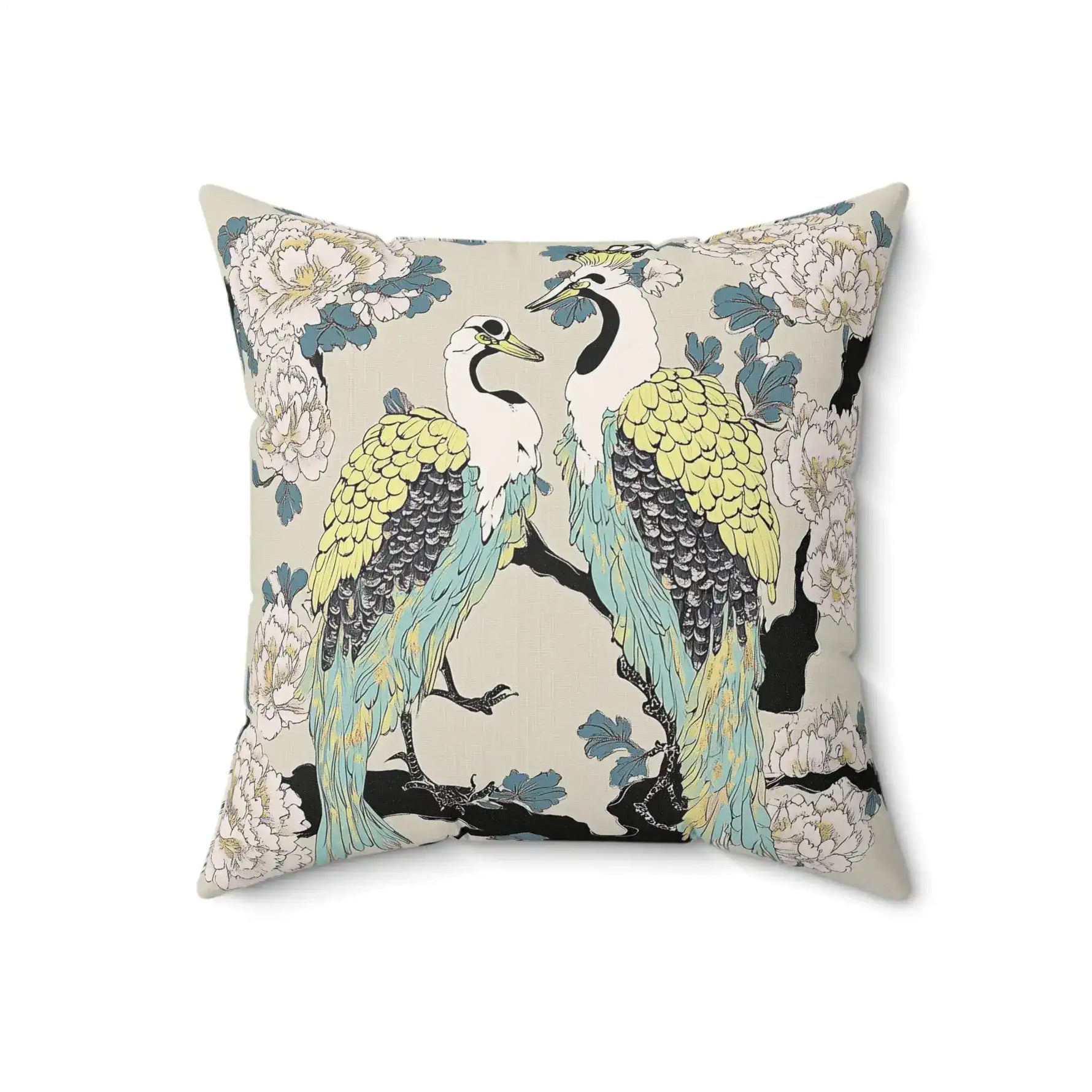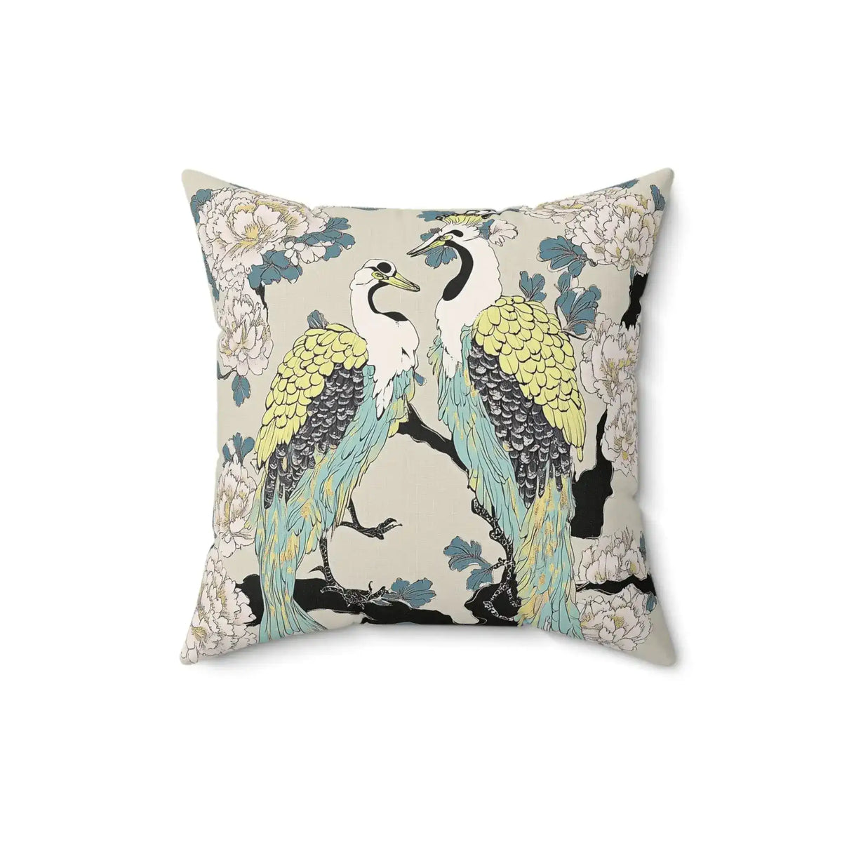 Majestic Cranes & Peonies Throw Pillow