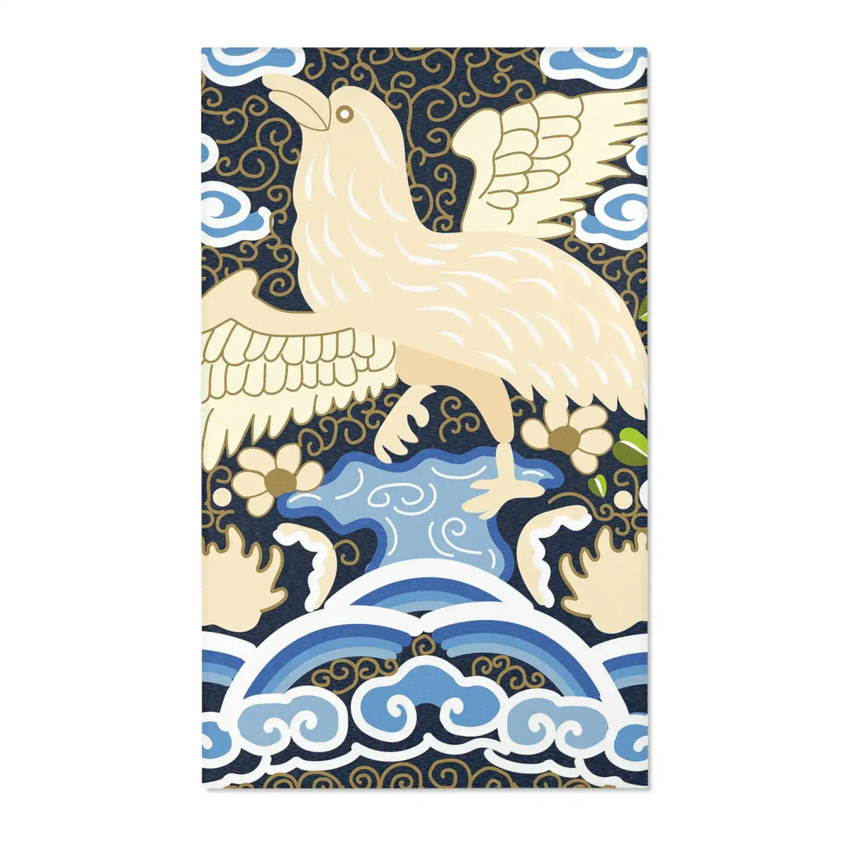 Majestic Phoenix Over Ocean Waves Accent Rug