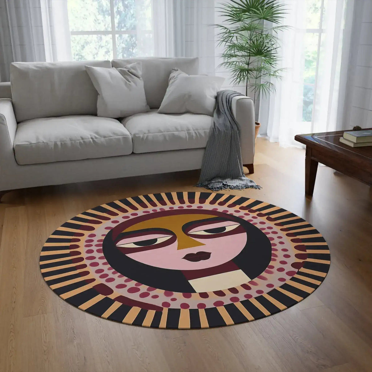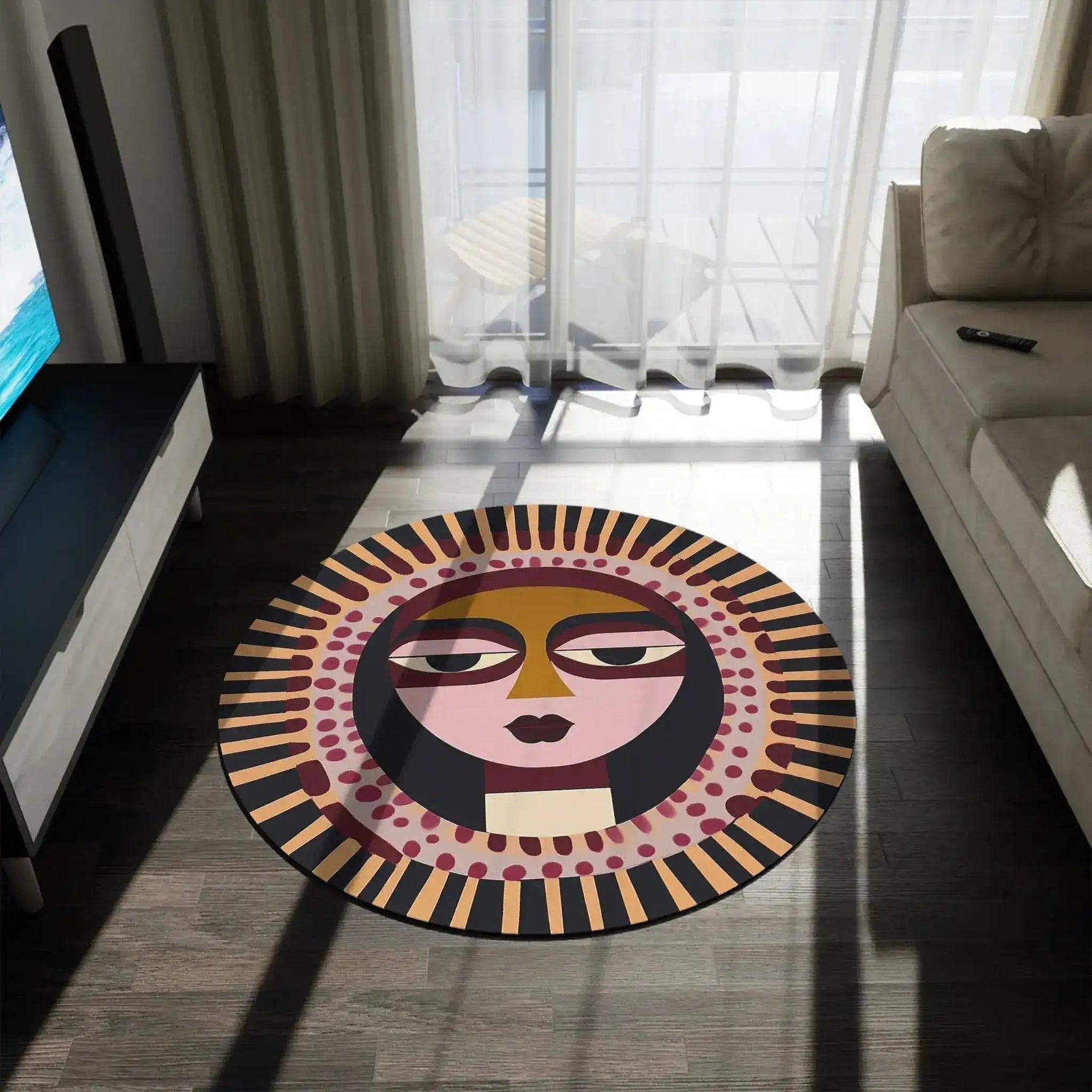 Modern Sun Mask Accent Rug
