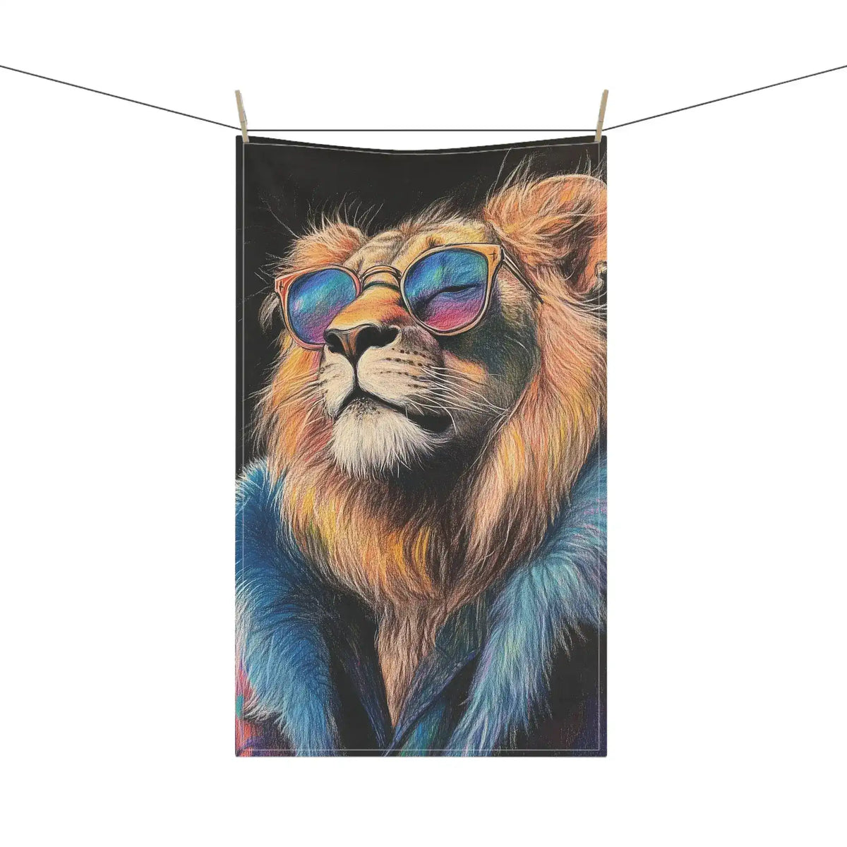 Neon King Vibrant Lion Cotton Kitchen Towel