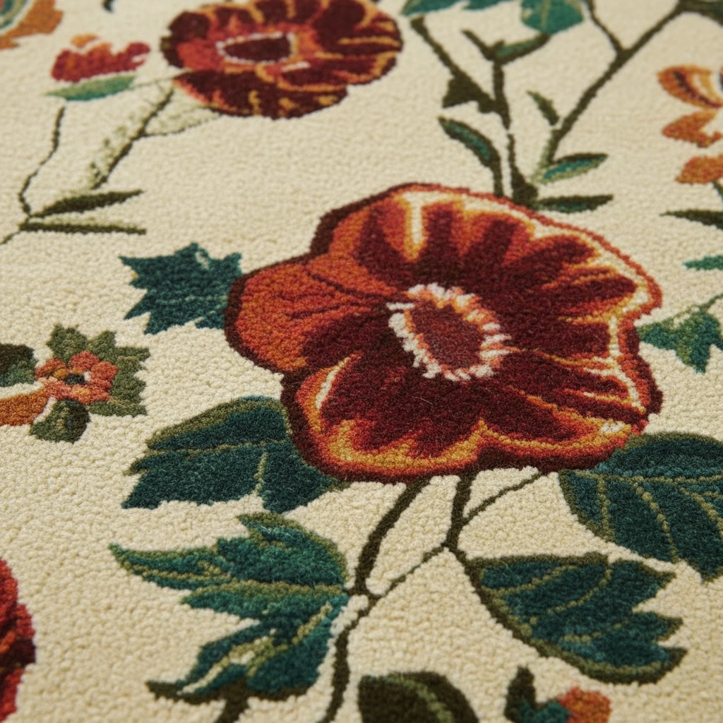 It is lovely how the Nostalgic Poppy Haven Hand Tufted Wool Rug is both art and warmth. It has lots of bright red flowers and lush plants that make you think of old-fashioned beauty. The best wool is tuft-tufted by hand to make this rug. It's soft and lasts a long time, so it's great for any living room. Its flower pattern from long ago makes your home feel warm and calm, like a place to relax and remember the good old days.
