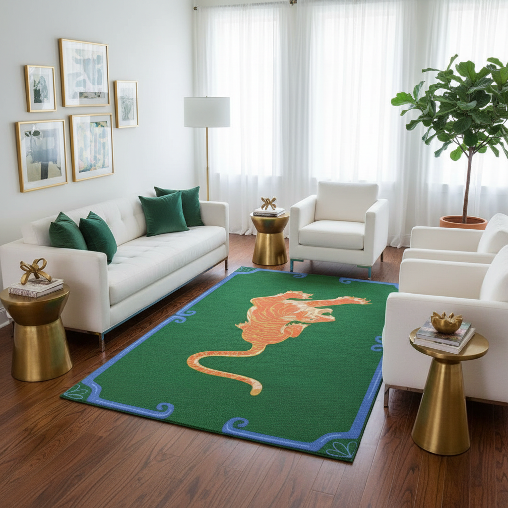 Orange Tiger Dark Green Hand Tufted Rug - Left