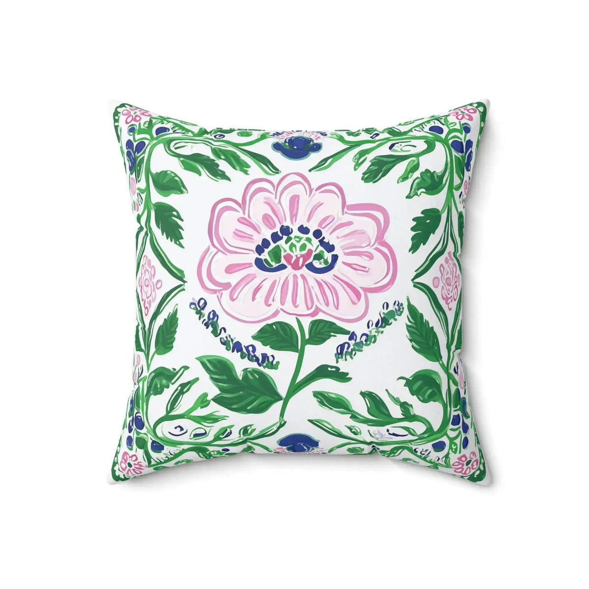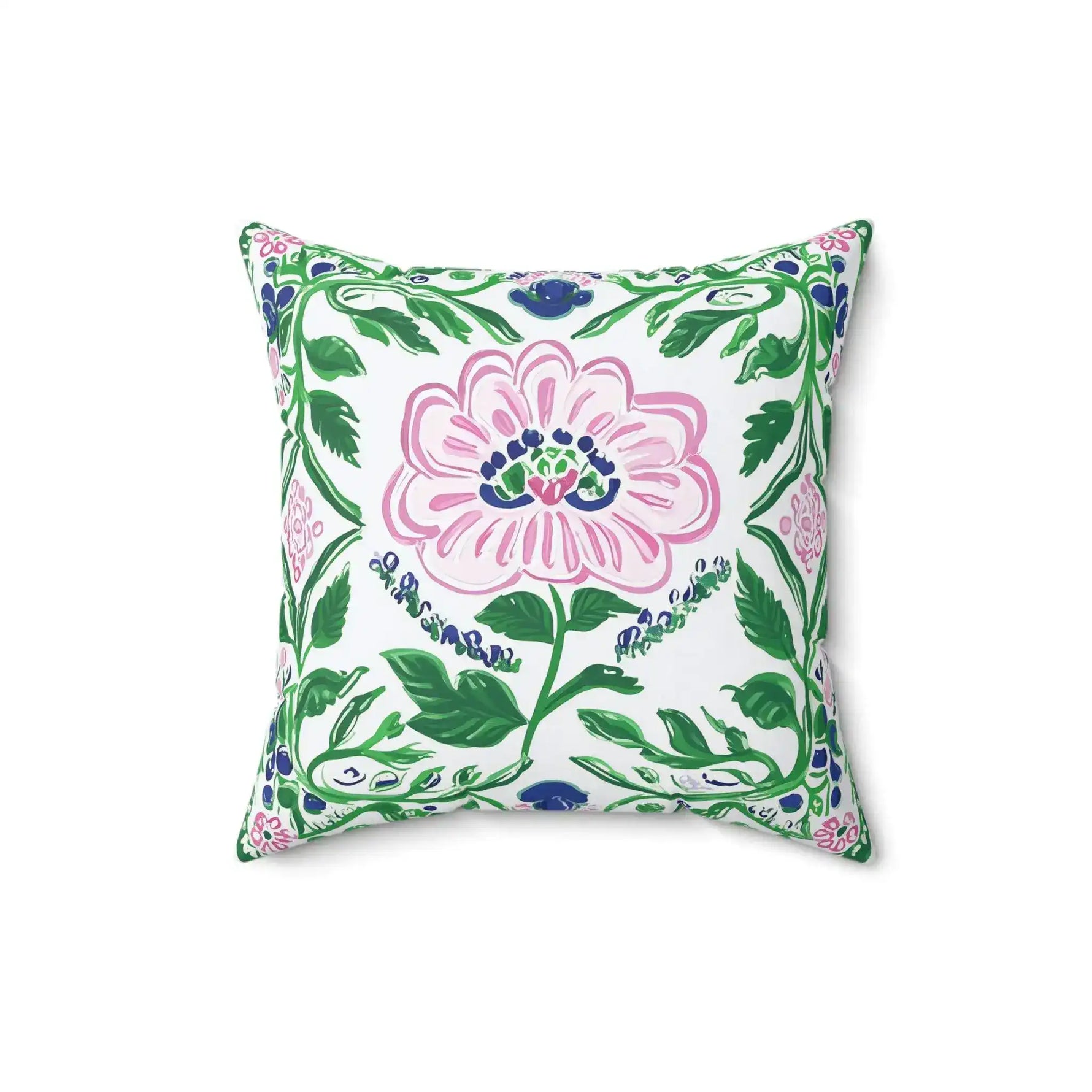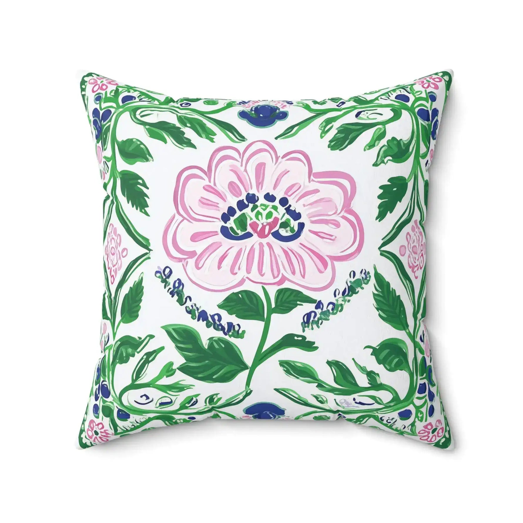 Painterly Folk Bloom Throw Pillow