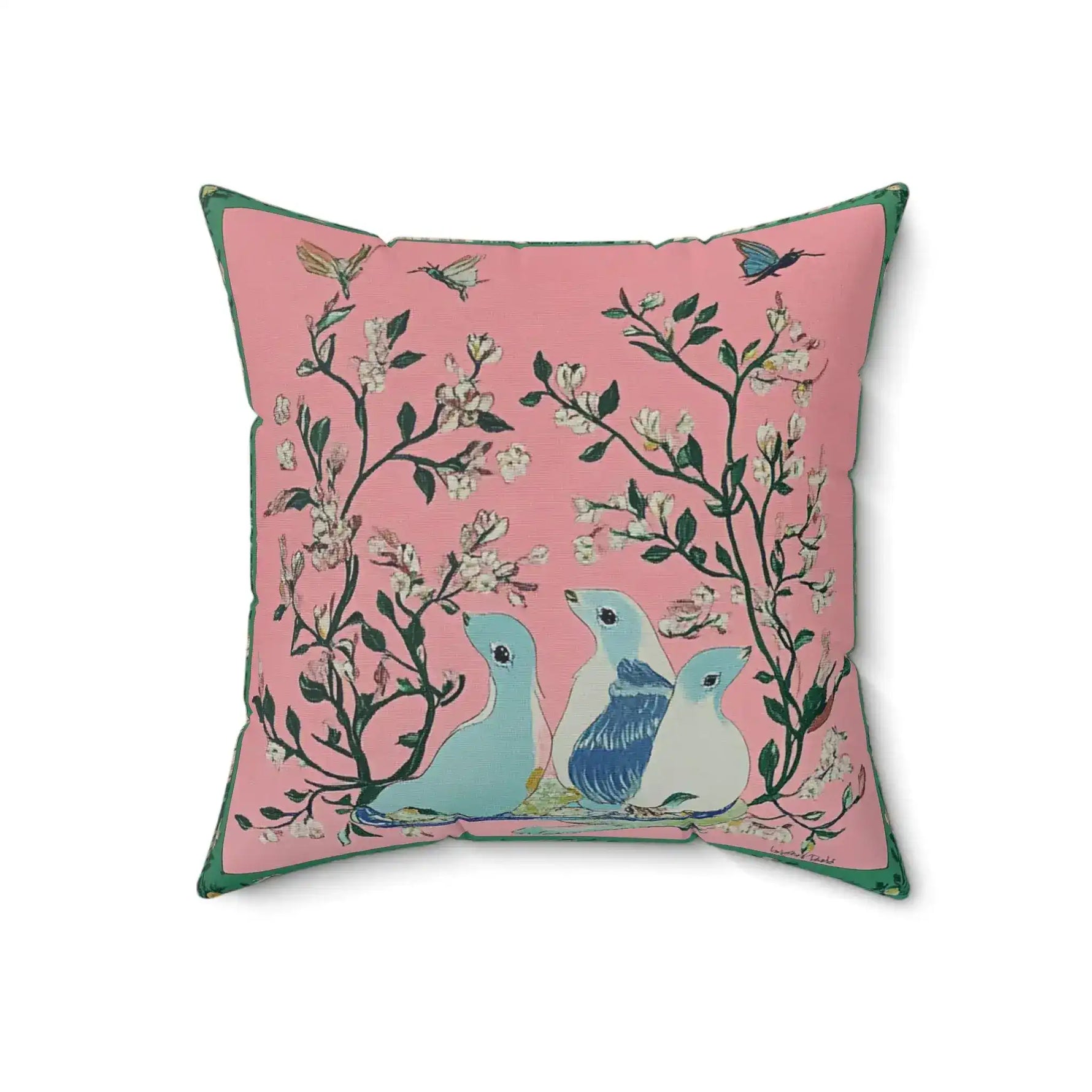 Pastel Birds and Blossoms Throw Pillow