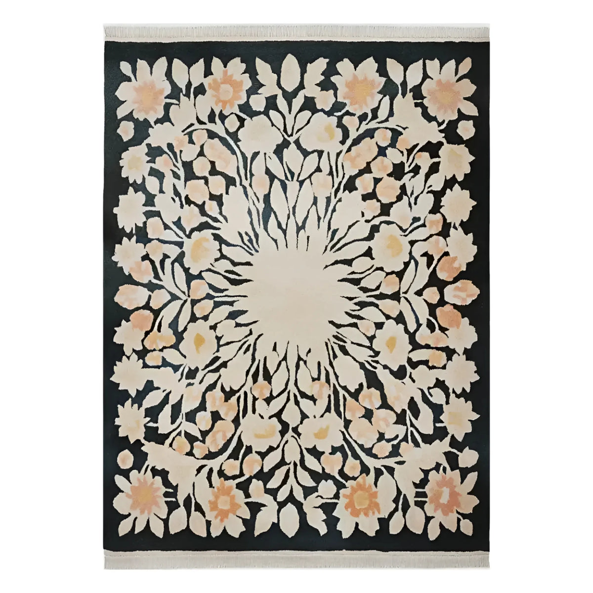 Step into a world of comfort and style with our Petal Harmony Hand Tufted Wool Rug. Featuring a floral design in striking shades of black and orange, this wool rug effortlessly merges traditional aesthetics with contemporary fashion. The tufted texture adds an extra layer of luxury, making it a pleasure to walk or sit on. Ideal for injecting a pop of color and warmth into your space, this rug will quickly become the centerpiece of your room.