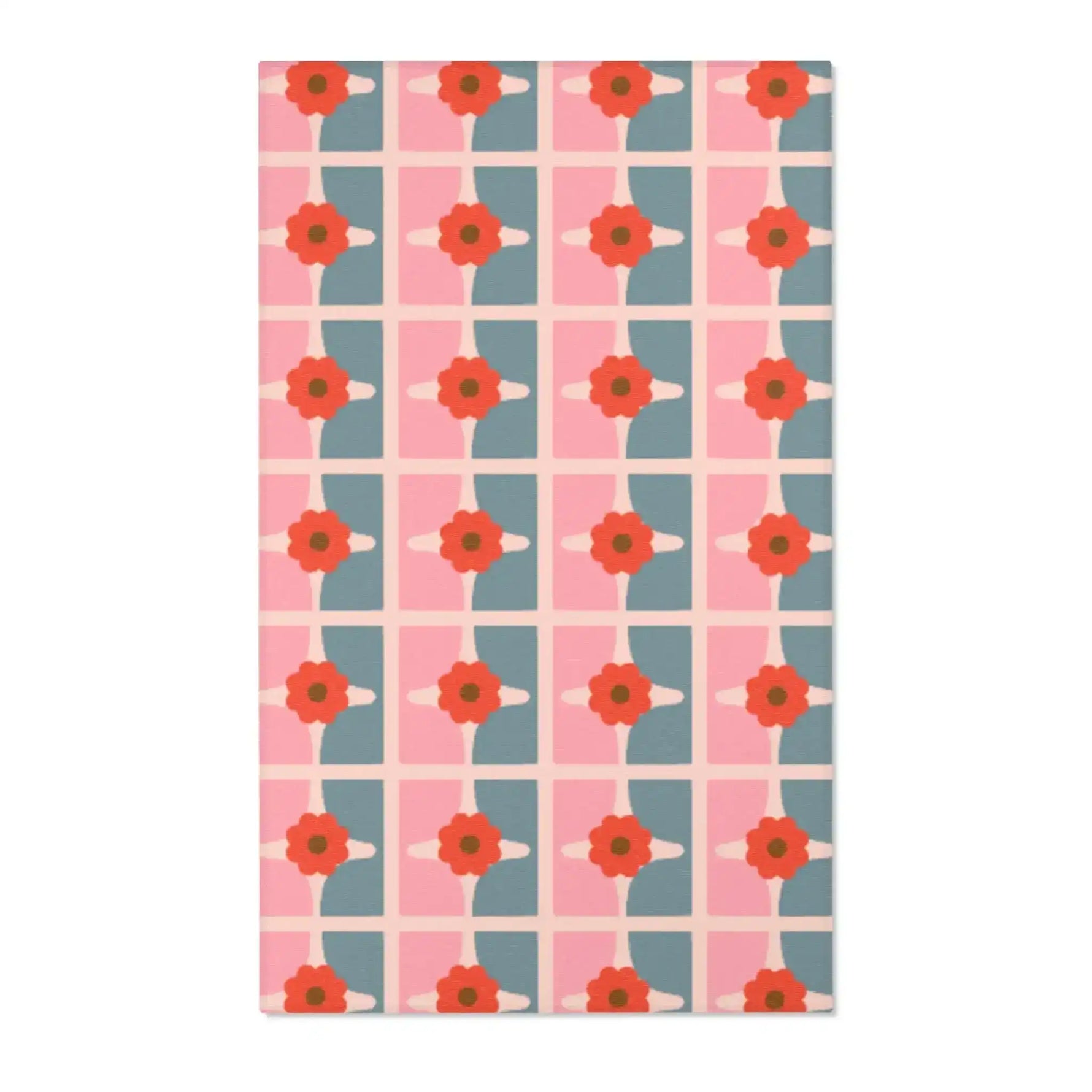 This accent rug features a bold, geometric sunburst design in black, red, and beige. The pattern radiates energy and vibrance, making it a striking addition to any room. The contrasting colors and dynamic shapes create a visually captivating piece that effortlessly enhances modern and artistic home decor.