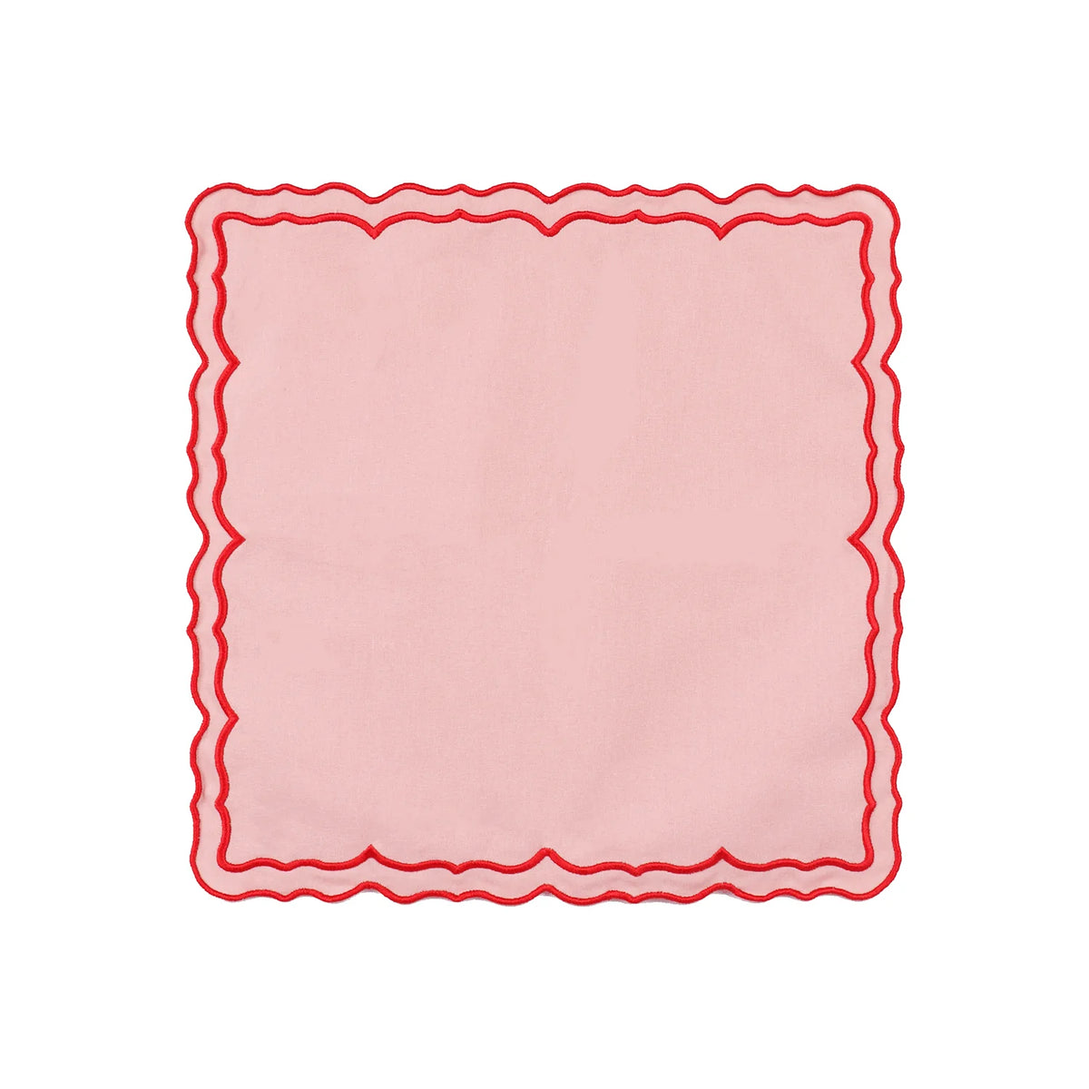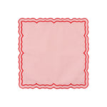 Add a touch of timeless luxury to your tablescape with our Pink Elegance Scallop Edge Placemat. Featuring a soft blush-pink cotton base framed with intricate wavy scallop edges embroidered in a striking red, this design blends elegance with playful charm. Perfect for elevating everyday dining or styling festive occasions, it offers a refined yet modern appeal.