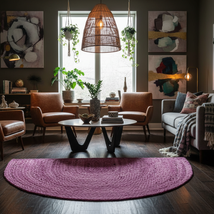 Pink Semi Circle Accent Jute Rug