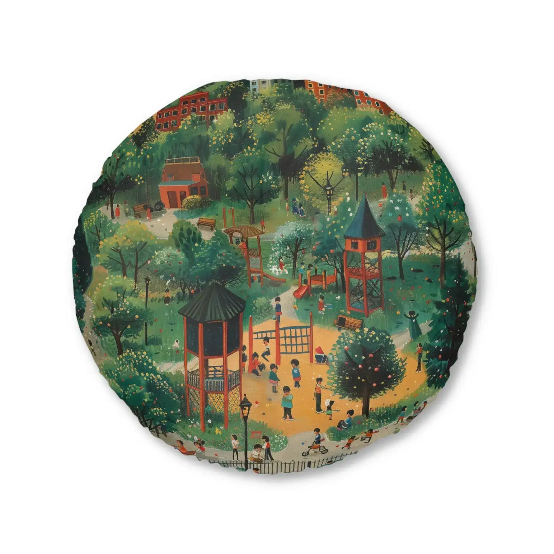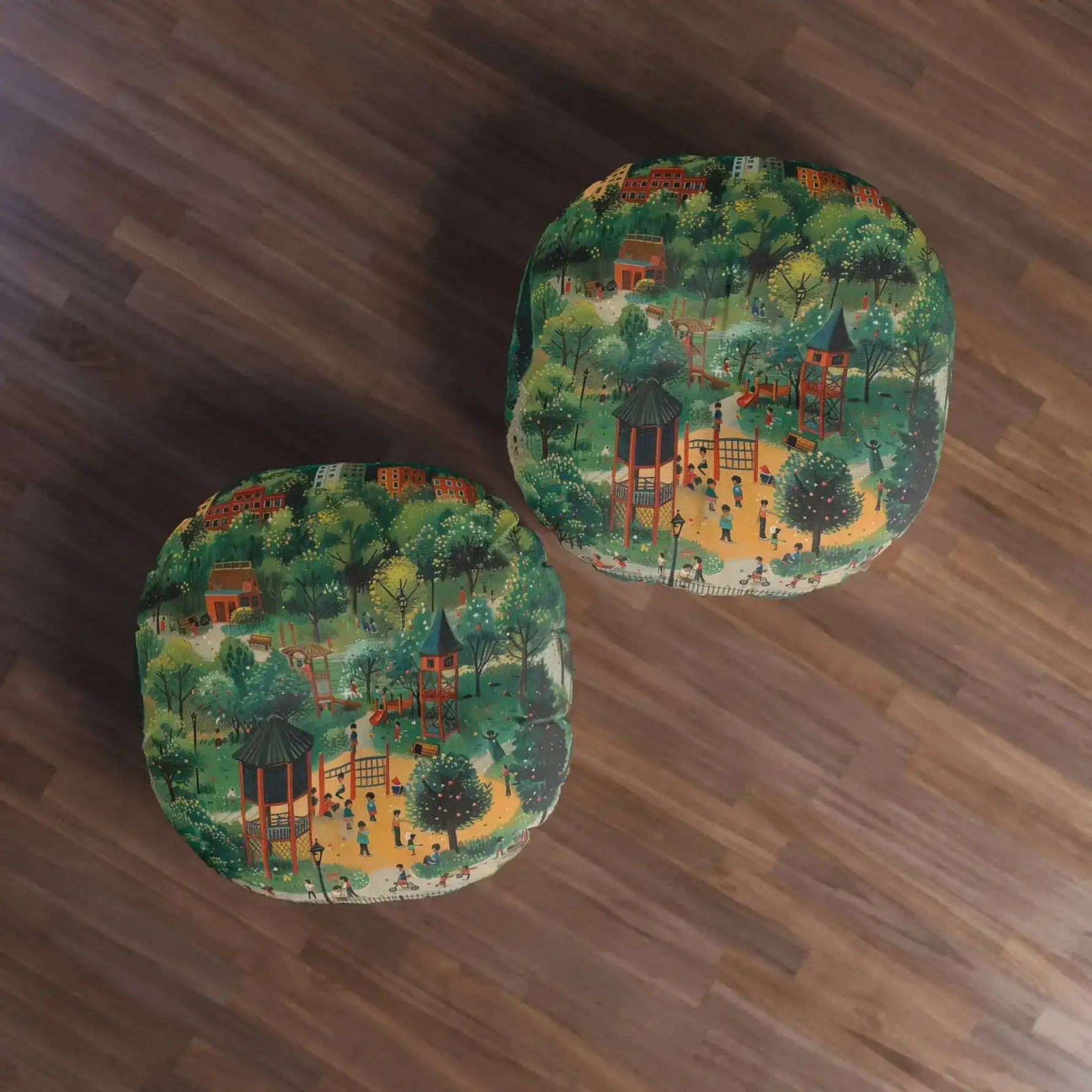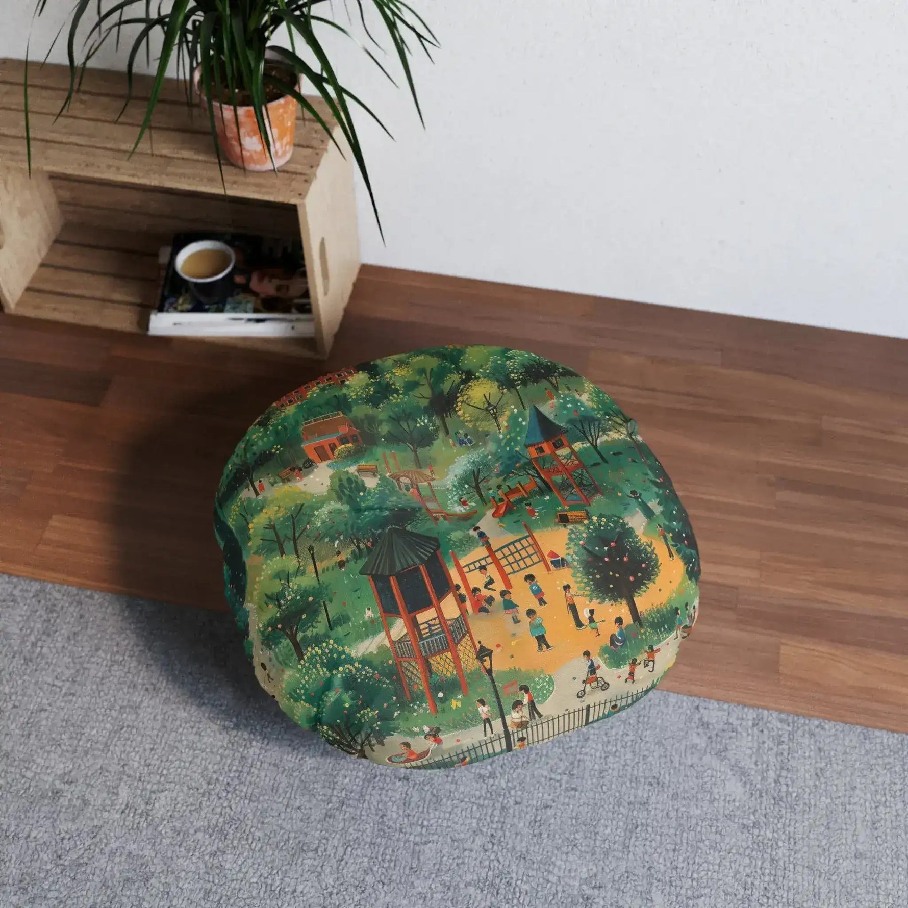 The Playful Park Scene Floor Pillow will make your home feel like a park. This cute design is full of charm and captures the carefree happiness of a sunny day at the park, where kids laugh, birds flutter, trees sway, and time seems to slow down. It's a soft escape into a happy, nature-filled moment, with pictures that look like they belong in a storybook.