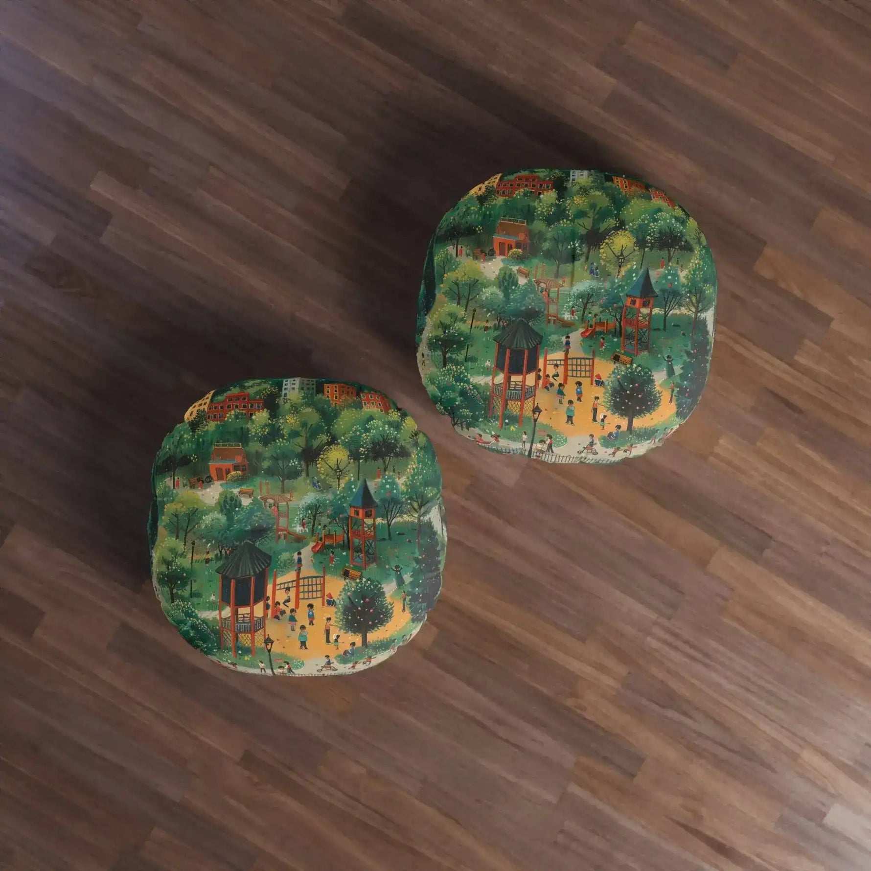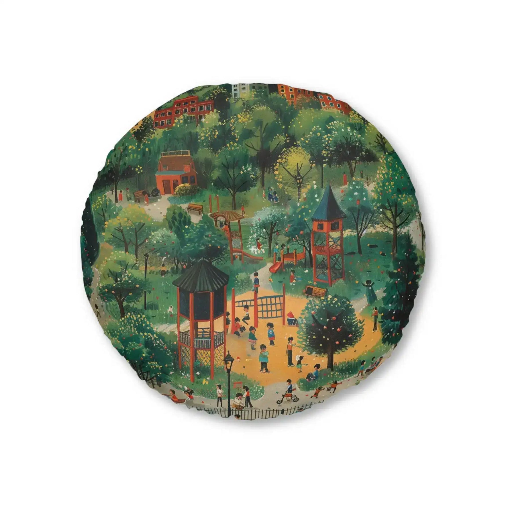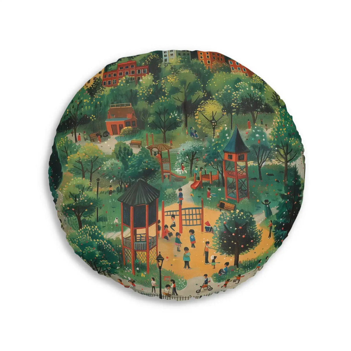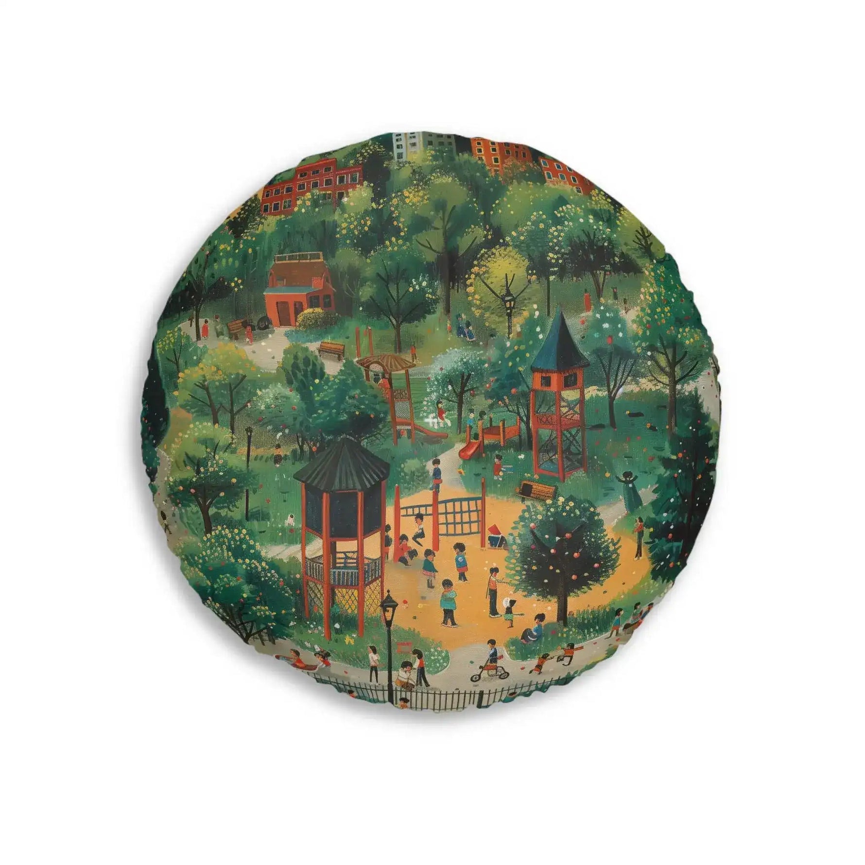 The Playful Park Scene Floor Pillow will make your home feel like a park. This cute design is full of charm and captures the carefree happiness of a sunny day at the park, where kids laugh, birds flutter, trees sway, and time seems to slow down. It's a soft escape into a happy, nature-filled moment, with pictures that look like they belong in a storybook.
