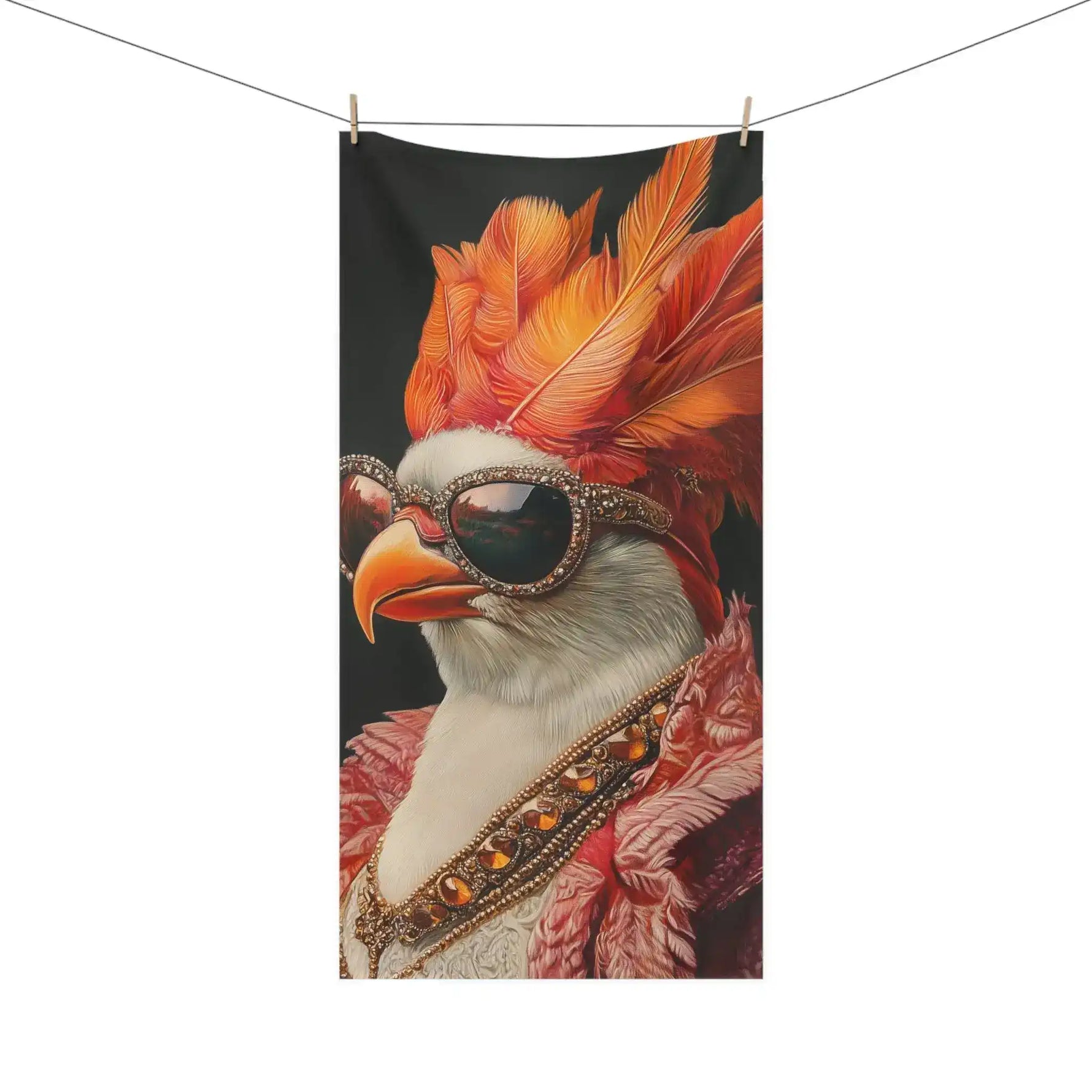 Renaissance Bird in Couture with Gemmed Sunglasses Bath Towel
