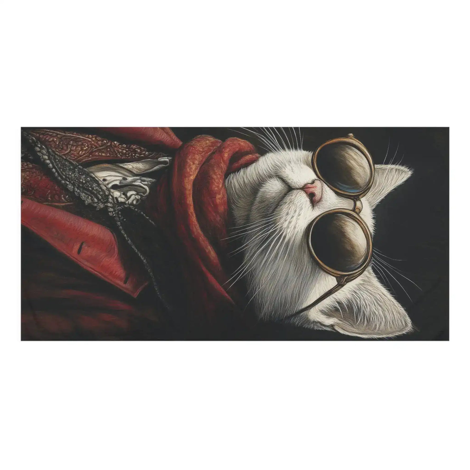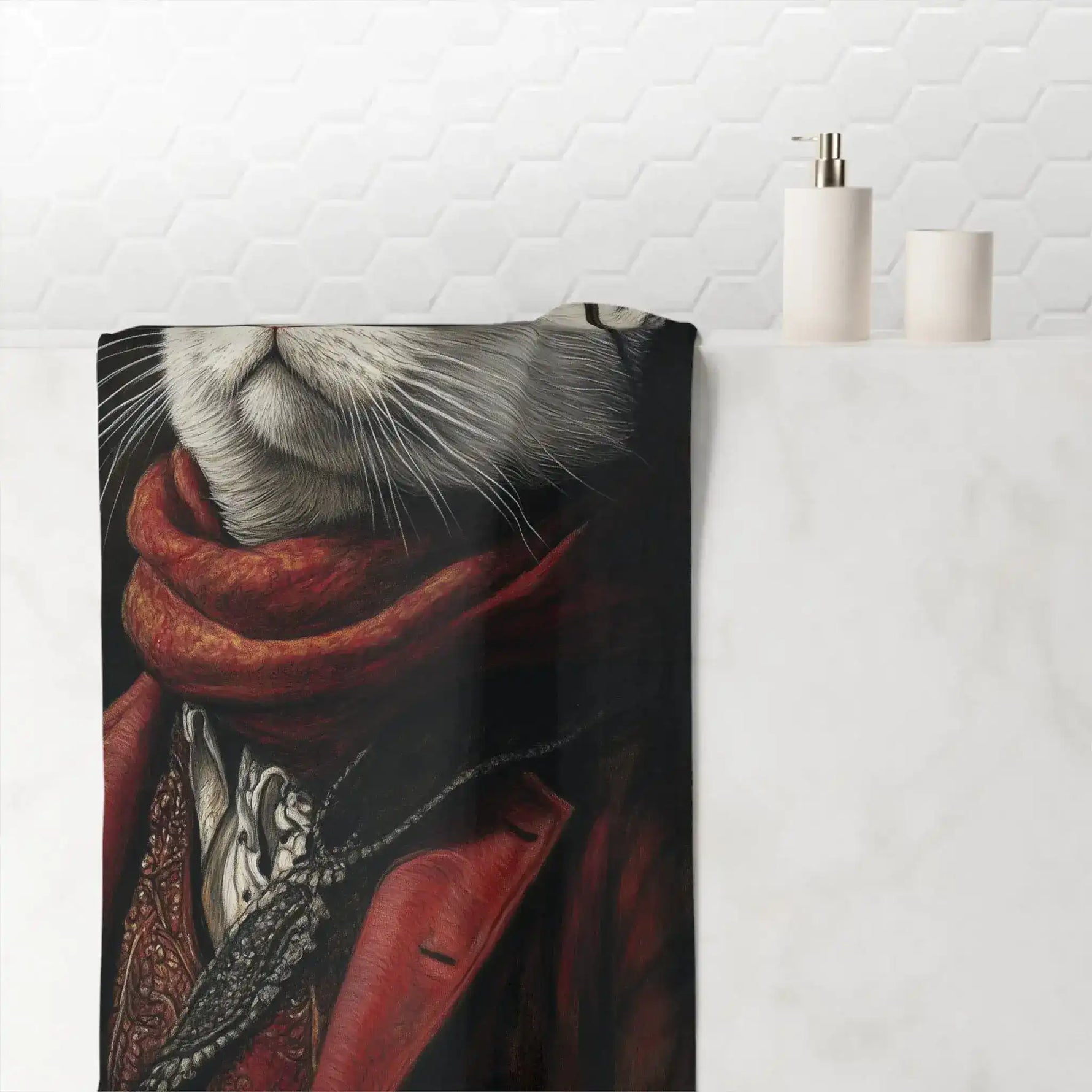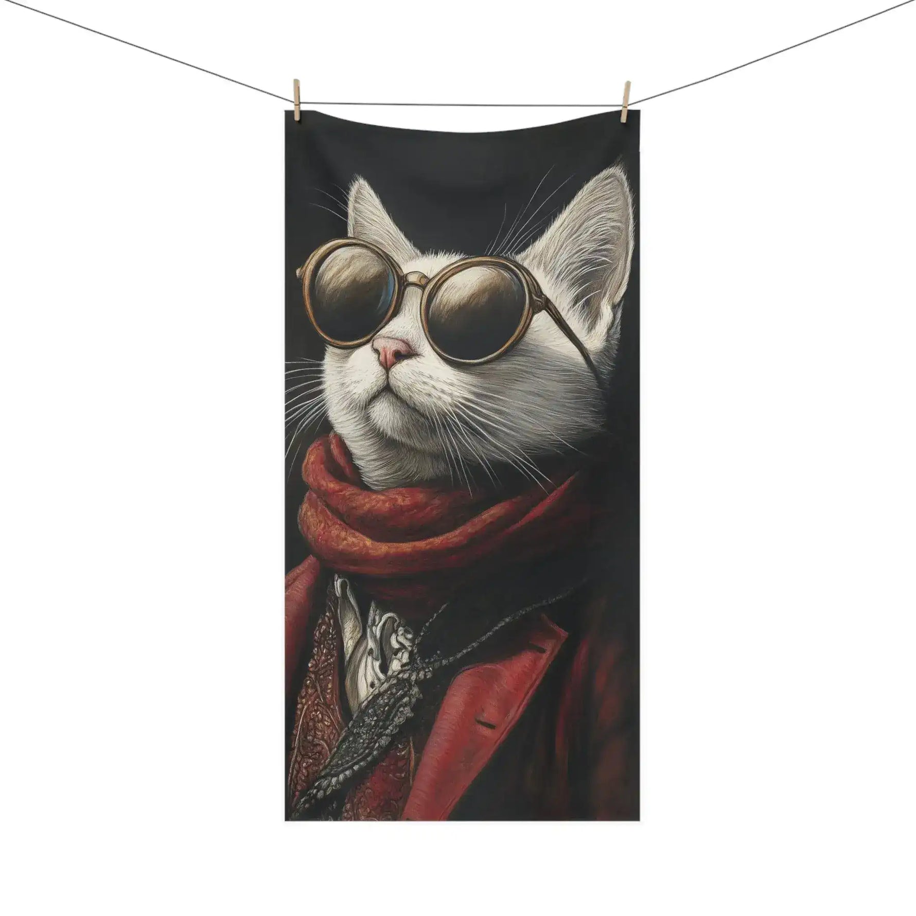 Renaissance Cat in Red Couture with Sunglasses Bath Towel