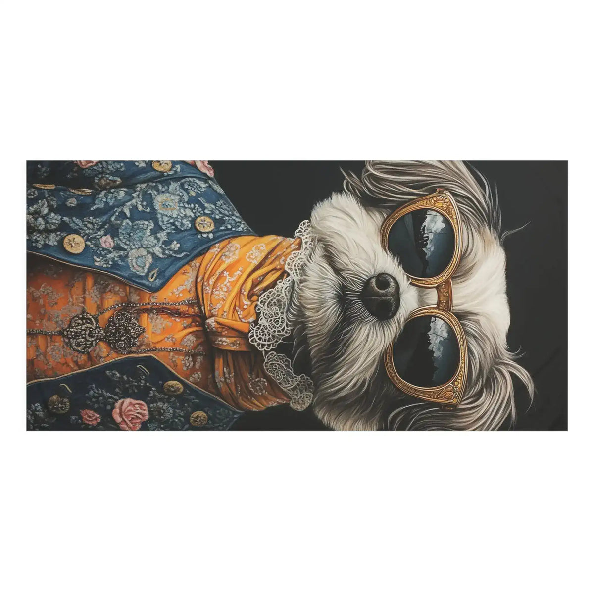 Renaissance Dog in Couture with Sunglasses Bath Towel