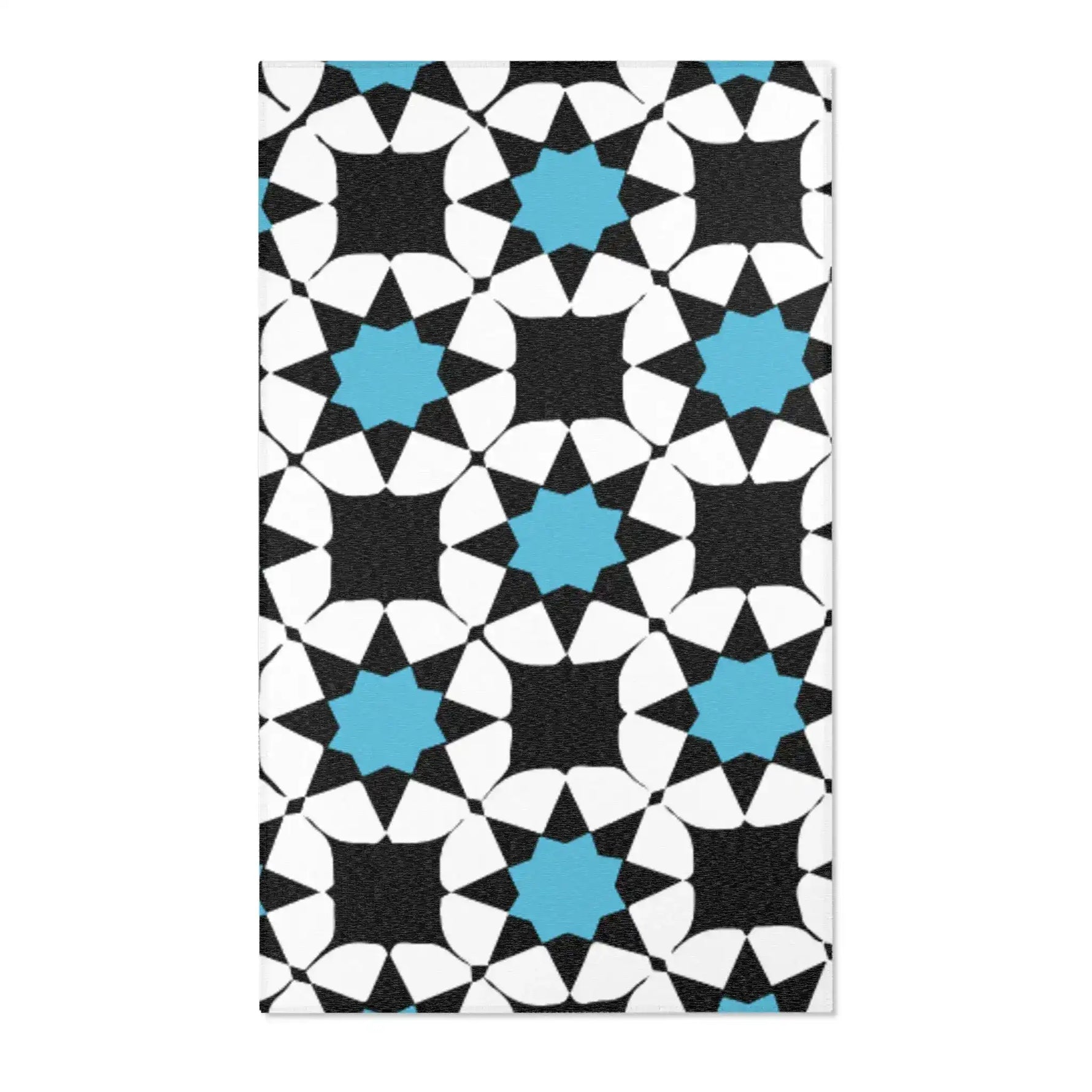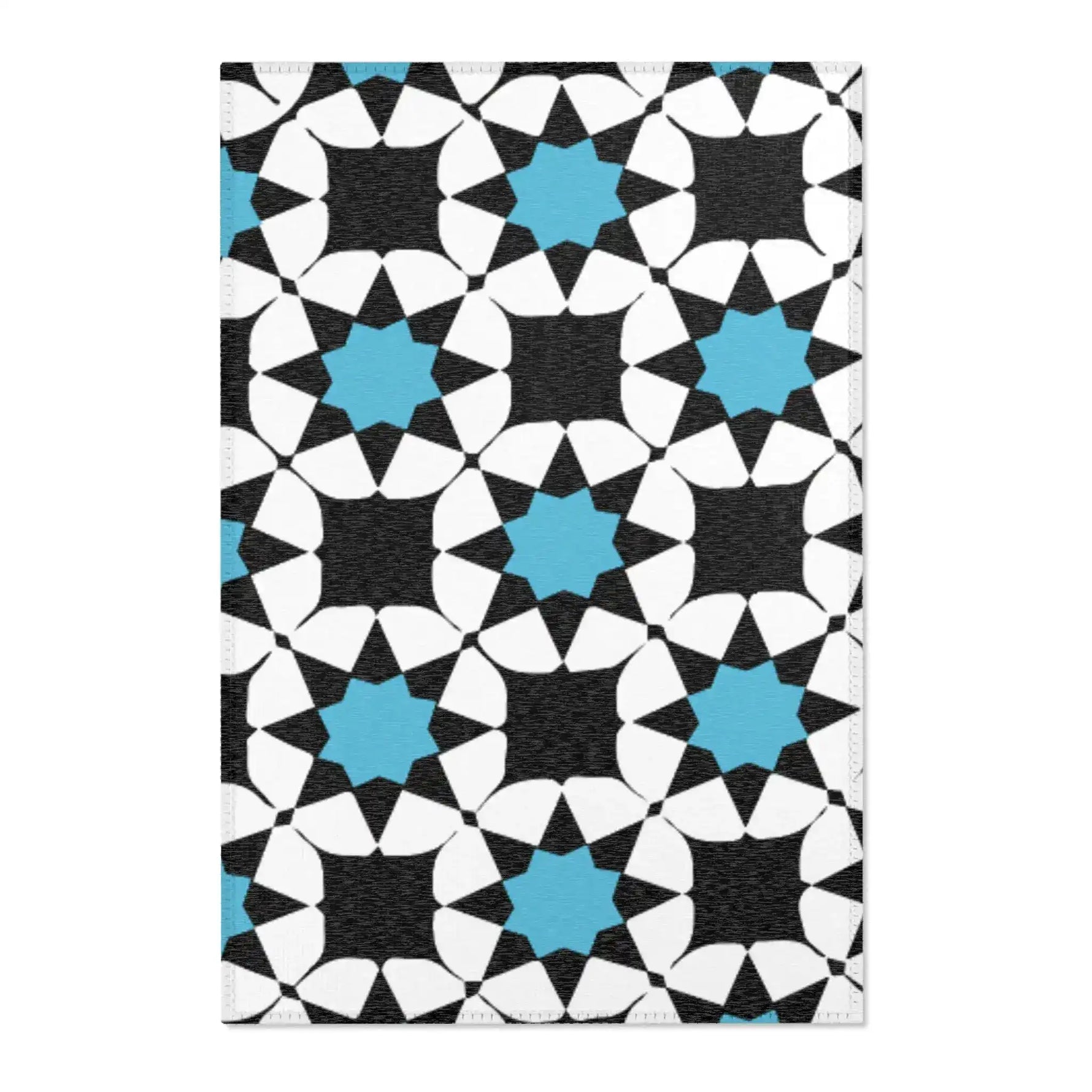 This accent rug features a bold, geometric sunburst design in black, red, and beige. The pattern radiates energy and vibrance, making it a striking addition to any room. The contrasting colors and dynamic shapes create a visually captivating piece that effortlessly enhances modern and artistic home decor.