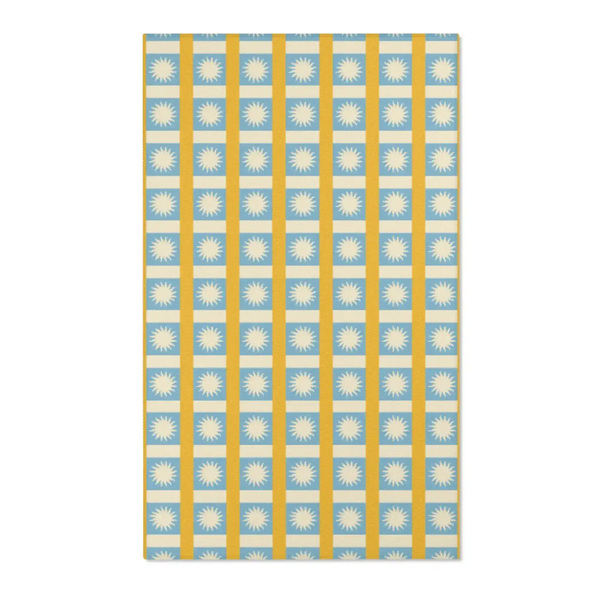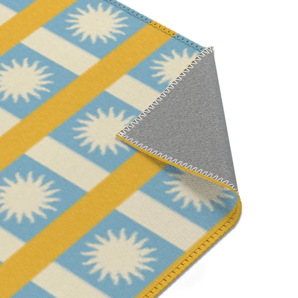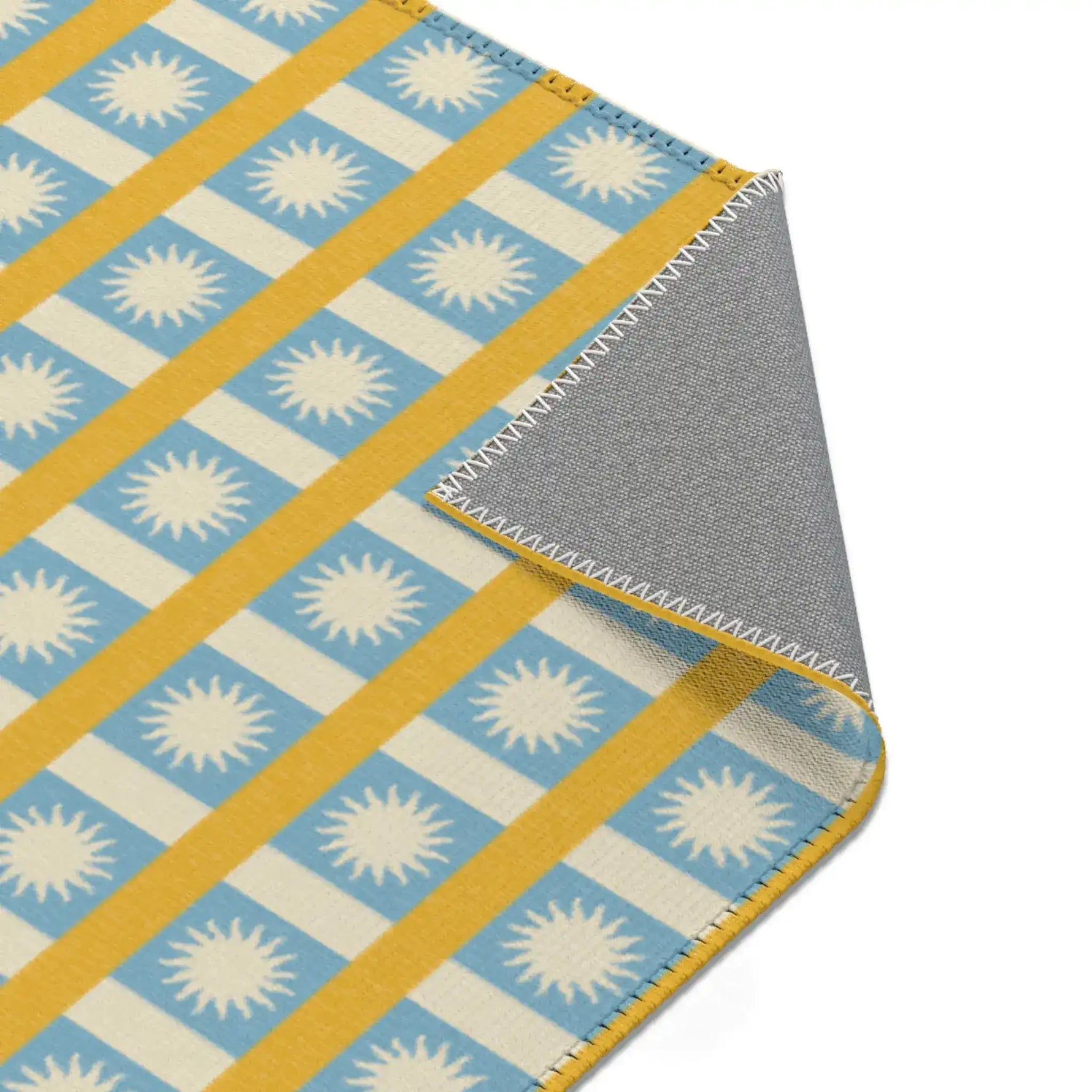 This accent rug features a bold, geometric sunburst design in black, red, and beige. The pattern radiates energy and vibrance, making it a striking addition to any room. The contrasting colors and dynamic shapes create a visually captivating piece that effortlessly enhances modern and artistic home decor.