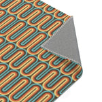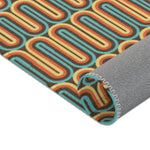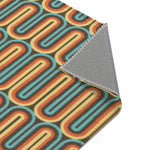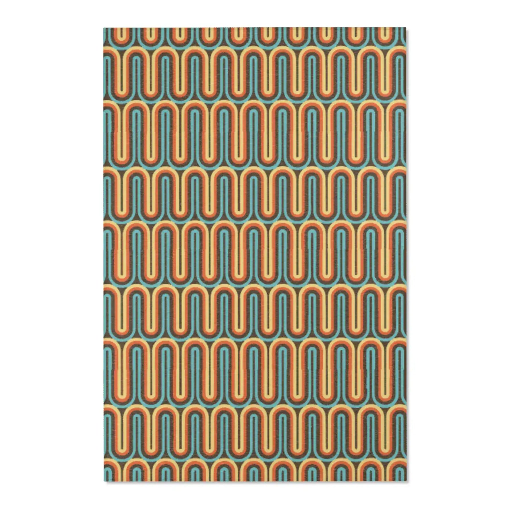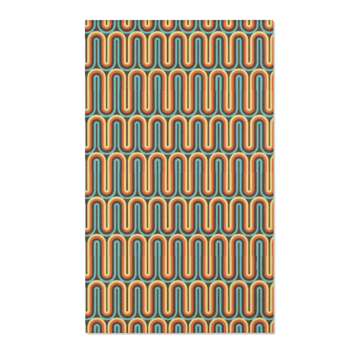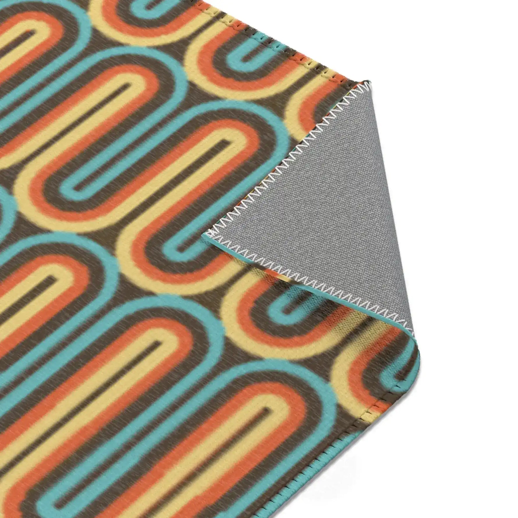 This accent rug features a bold, geometric sunburst design in black, red, and beige. The pattern radiates energy and vibrance, making it a striking addition to any room. The contrasting colors and dynamic shapes create a visually captivating piece that effortlessly enhances modern and artistic home decor.