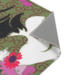 This accent rug features a bold, geometric sunburst design in black, red, and beige. The pattern radiates energy and vibrance, making it a striking addition to any room. The contrasting colors and dynamic shapes create a visually captivating piece that effortlessly enhances modern and artistic home decor.