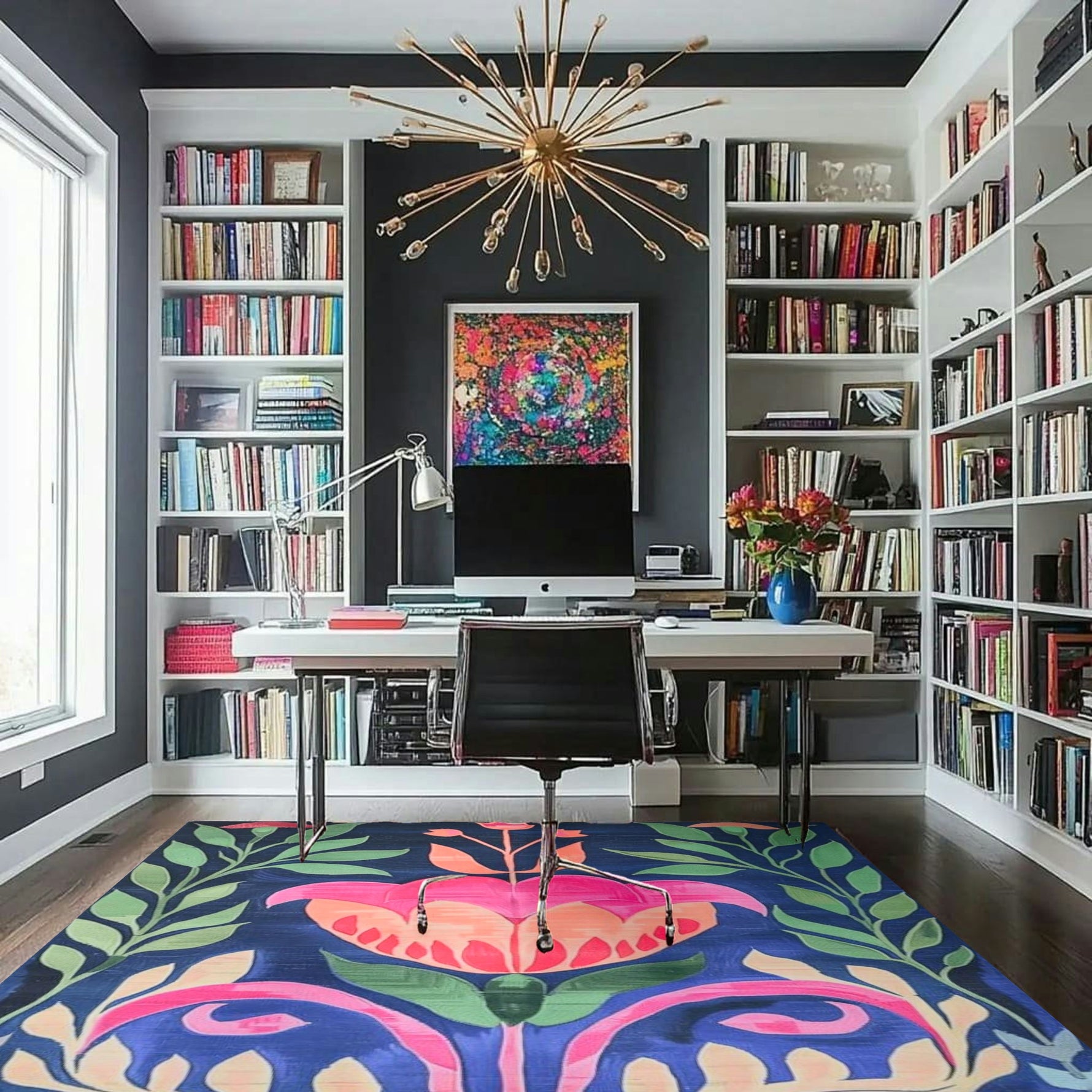 The Serenade of Mexico Hand-Tufted Rug makes you feel like you're in a lively cultural event. This rug has a lot of different patterns and colors that work together to tell a story about art and culture. It got its idea from the intricate beauty of Mexican embroidery. Because they are hand-tufted, the bright designs have a luxurious feel. This makes a centerpiece that dances with life and charm. This rug brings the warmth and tradition of Mexico into your home. It can be used in any room to make a fun tribute to art that goes back a long time.