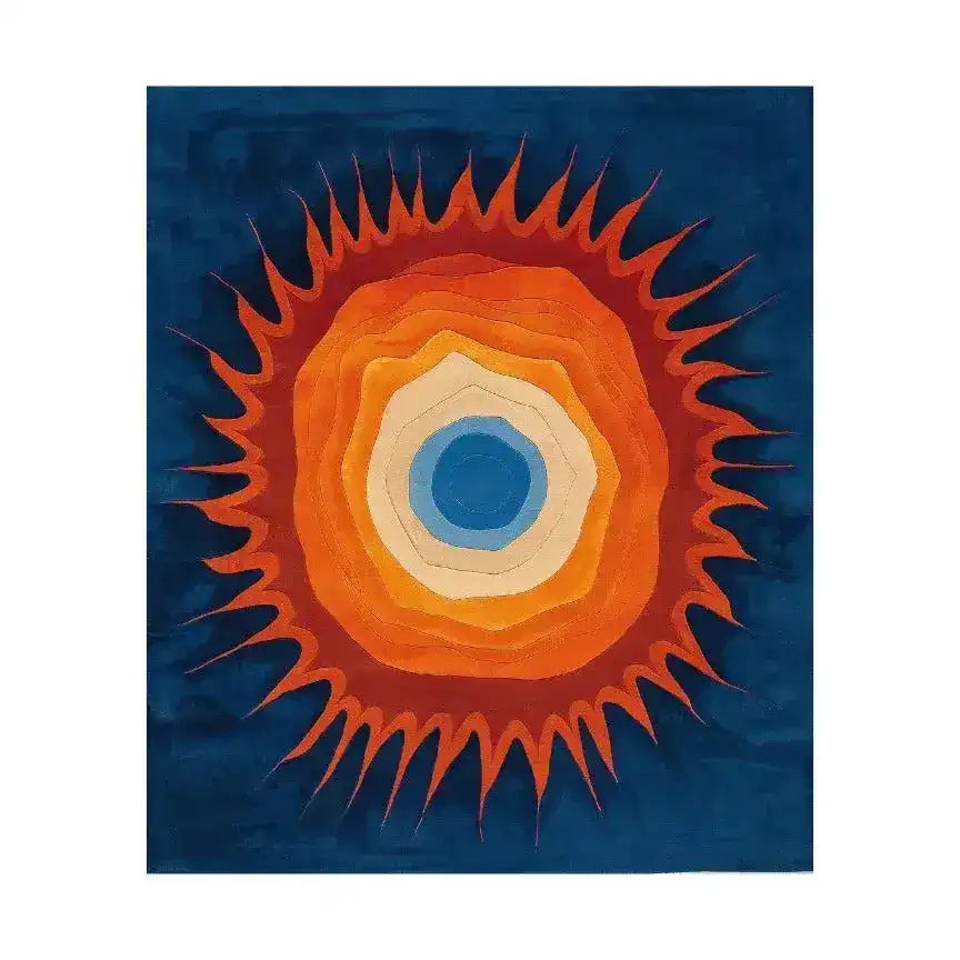 This Sunburst Hand-Tufted Wool Rug was made to look like the bright sun rising. It will bring love and energy into your home. Care was taken to make this rug from fine New Zealand wool and viscose. It instantly makes any place feel better with its lively sunburst lines and bright colors. Because it is soft and well-made, it lasts a long time and looks good for a long time. Whether you want to make your home feel more alive or just add some color, this rug will do the trick.