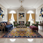 The lineage of fine textile artistry in our extraordinary ‘Sunlit Floral Symphony’ hand-tufted rug is a tribute to the rich traditions of Central Asian Suzani. The meticulous symmetry and vibrant colors are pleasing to the eye and resonate with centuries of cultural expression and symbolism. This piece is a narrative woven in thread, and a testament to the enduring beauty of heritage craftsmanship, perfect for the discerning collector of timeless art.