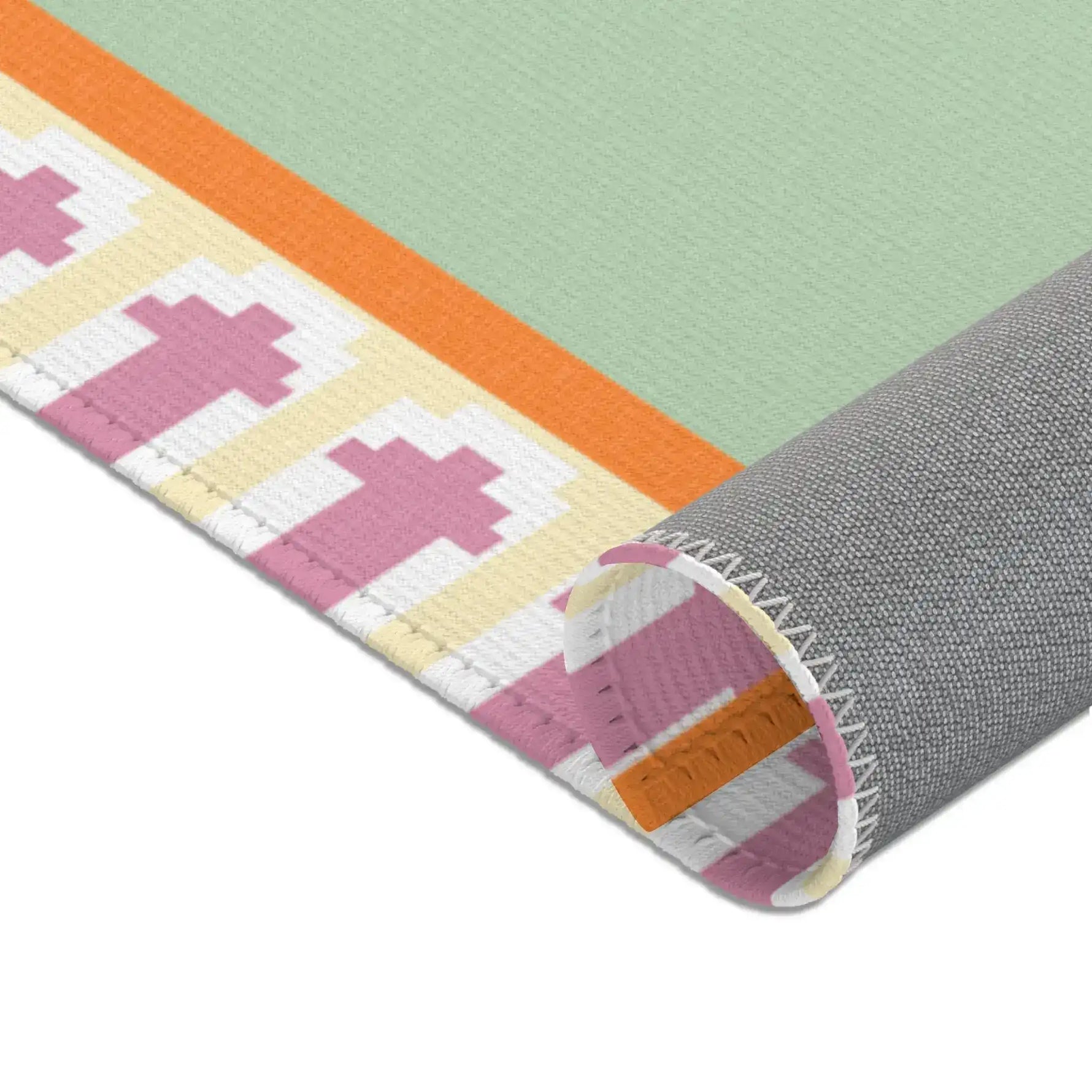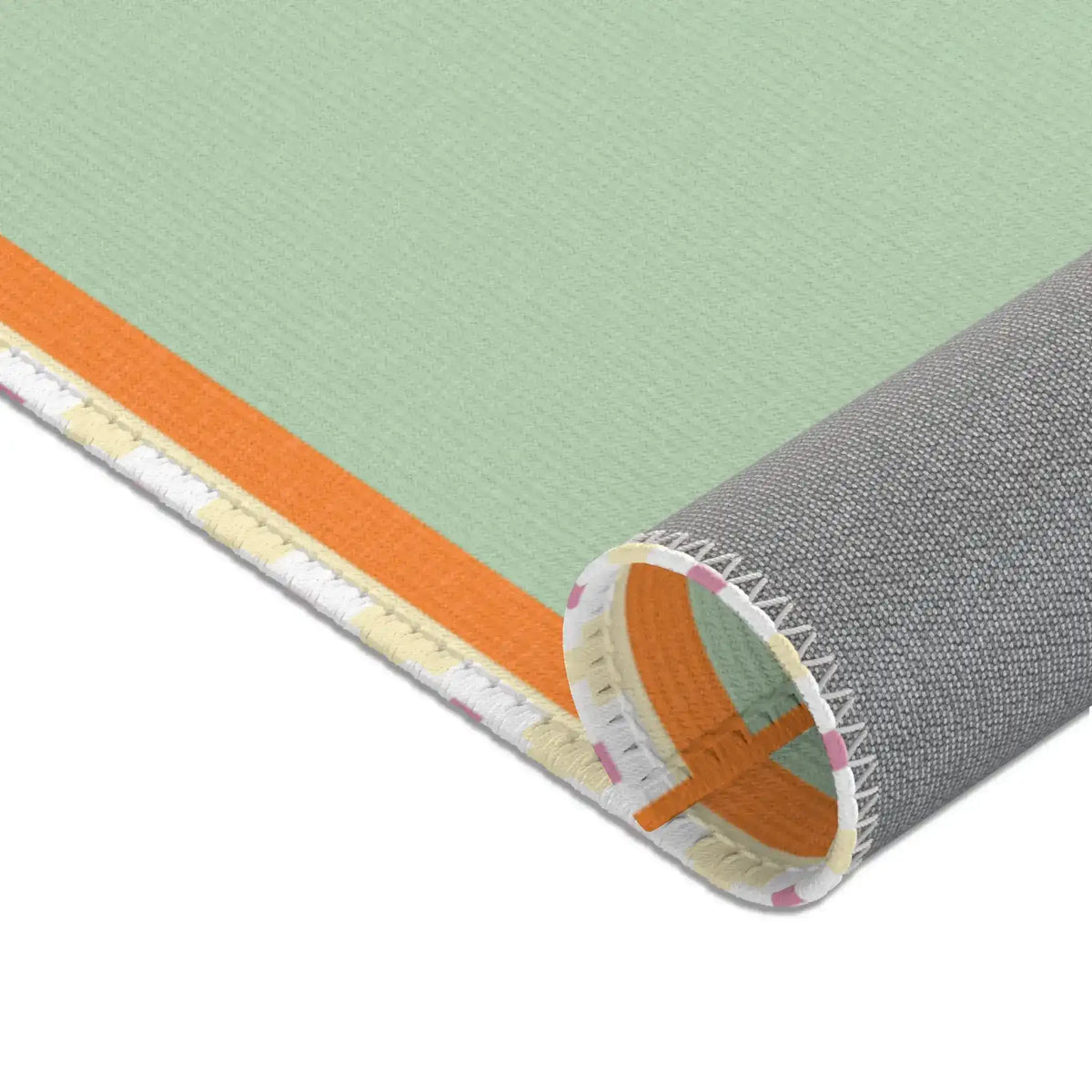 This accent rug features a bold, geometric sunburst design in black, red, and beige. The pattern radiates energy and vibrance, making it a striking addition to any room. The contrasting colors and dynamic shapes create a visually captivating piece that effortlessly enhances modern and artistic home decor.