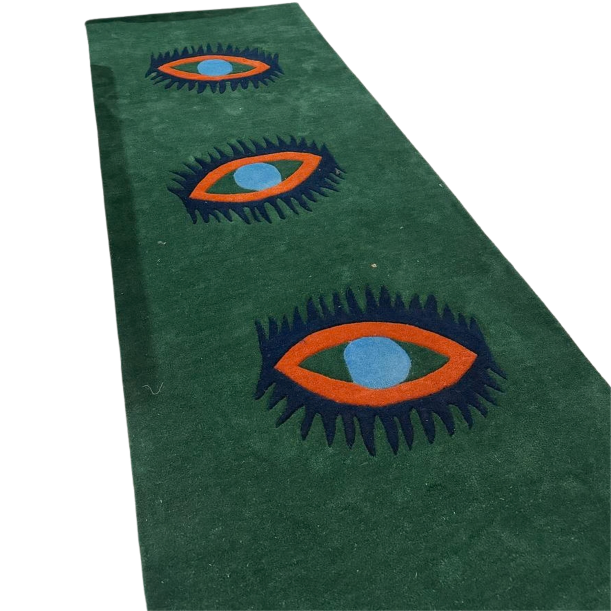 Introducing our Three Evil Eyes Green Hand-Tufted Wool Rug - the wickedly stylish addition your floors have been craving! Crafted with devilish attention to detail, this rug is bound to cast a spell on your space. With its eye-catching design and luxurious wool texture, it's a bewitchingly good choice for adding a touch of magic to any room.