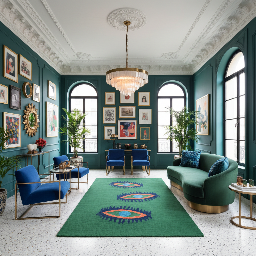Three Evil Eyes Green Hand Tufted Wool Rug