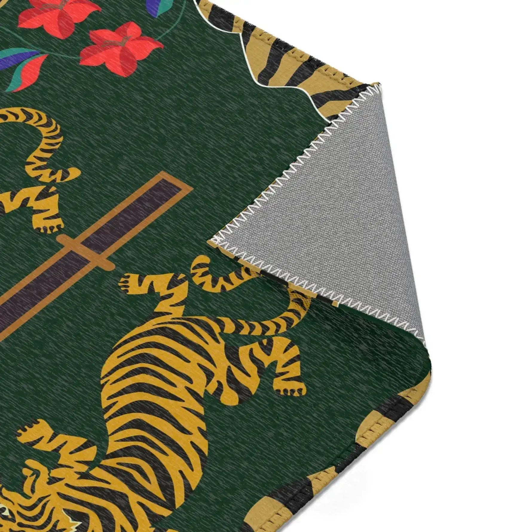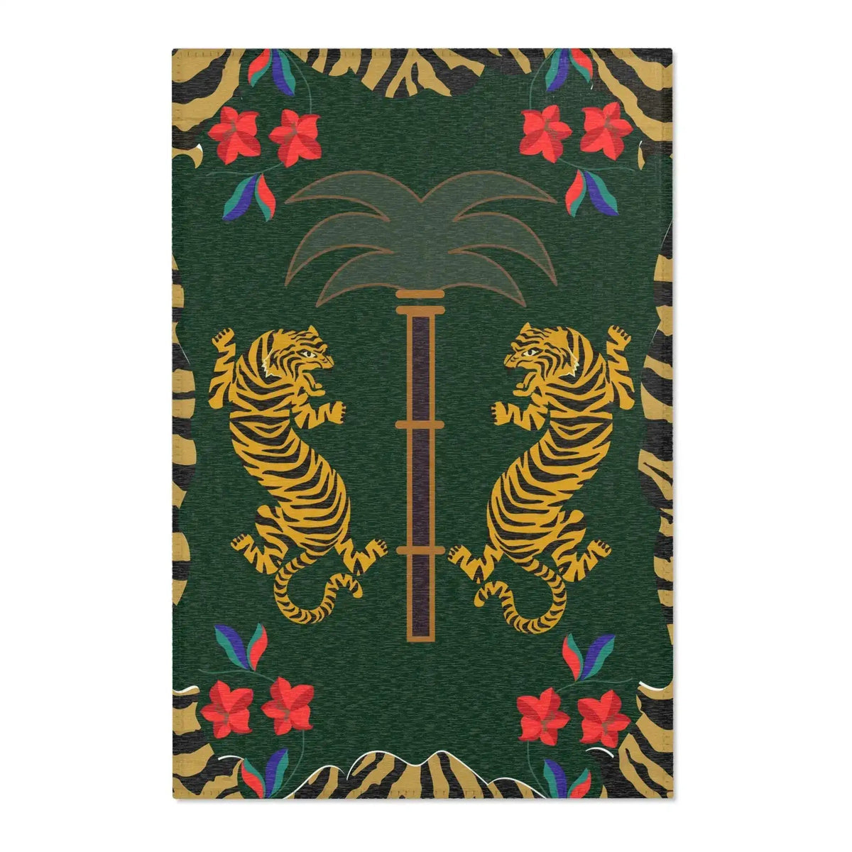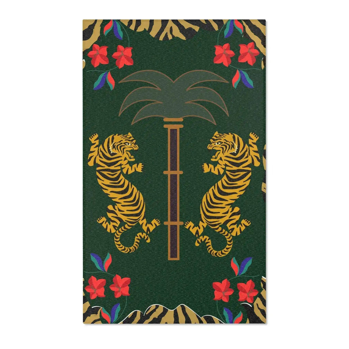 Twin Tigers Under Palm Tree Accent Rug