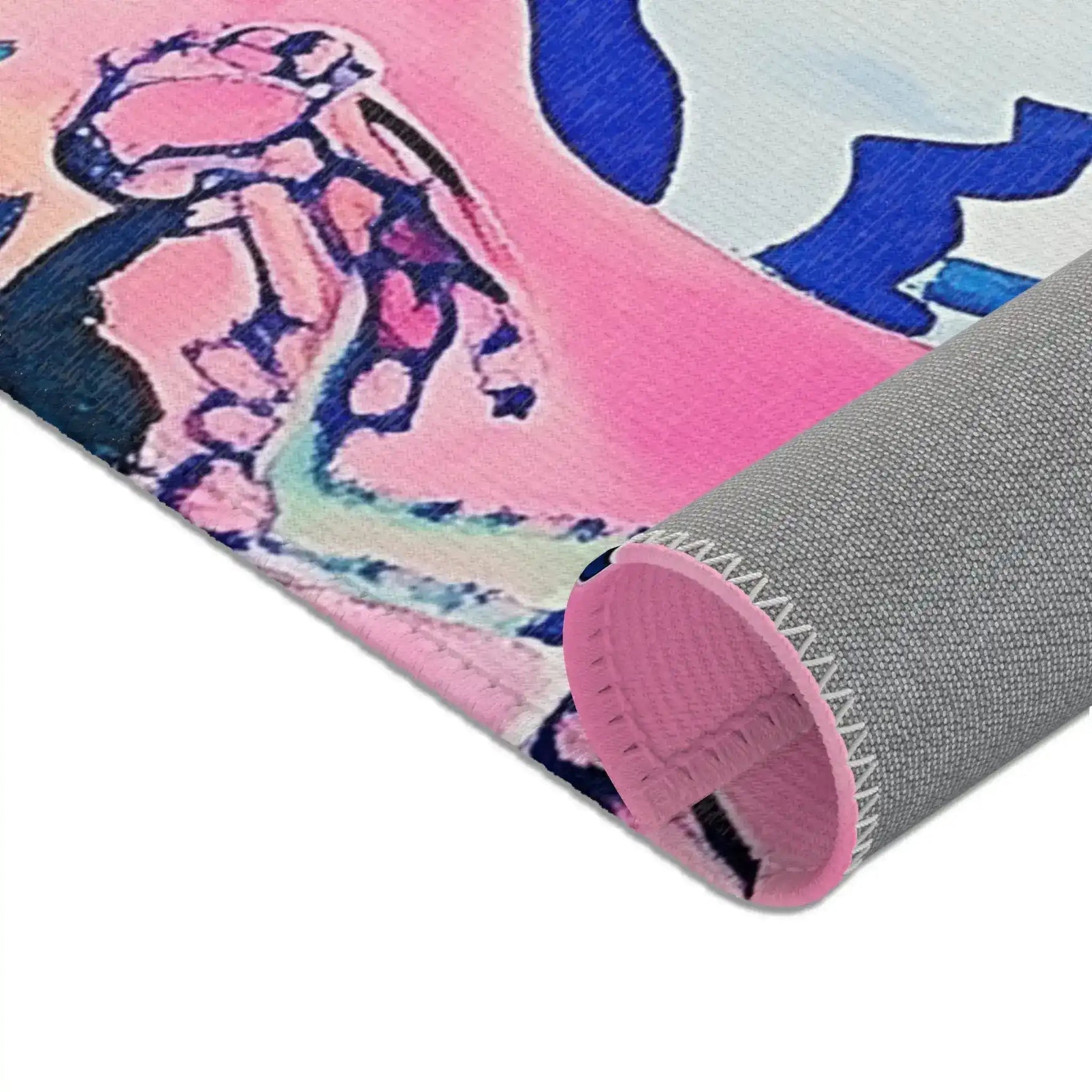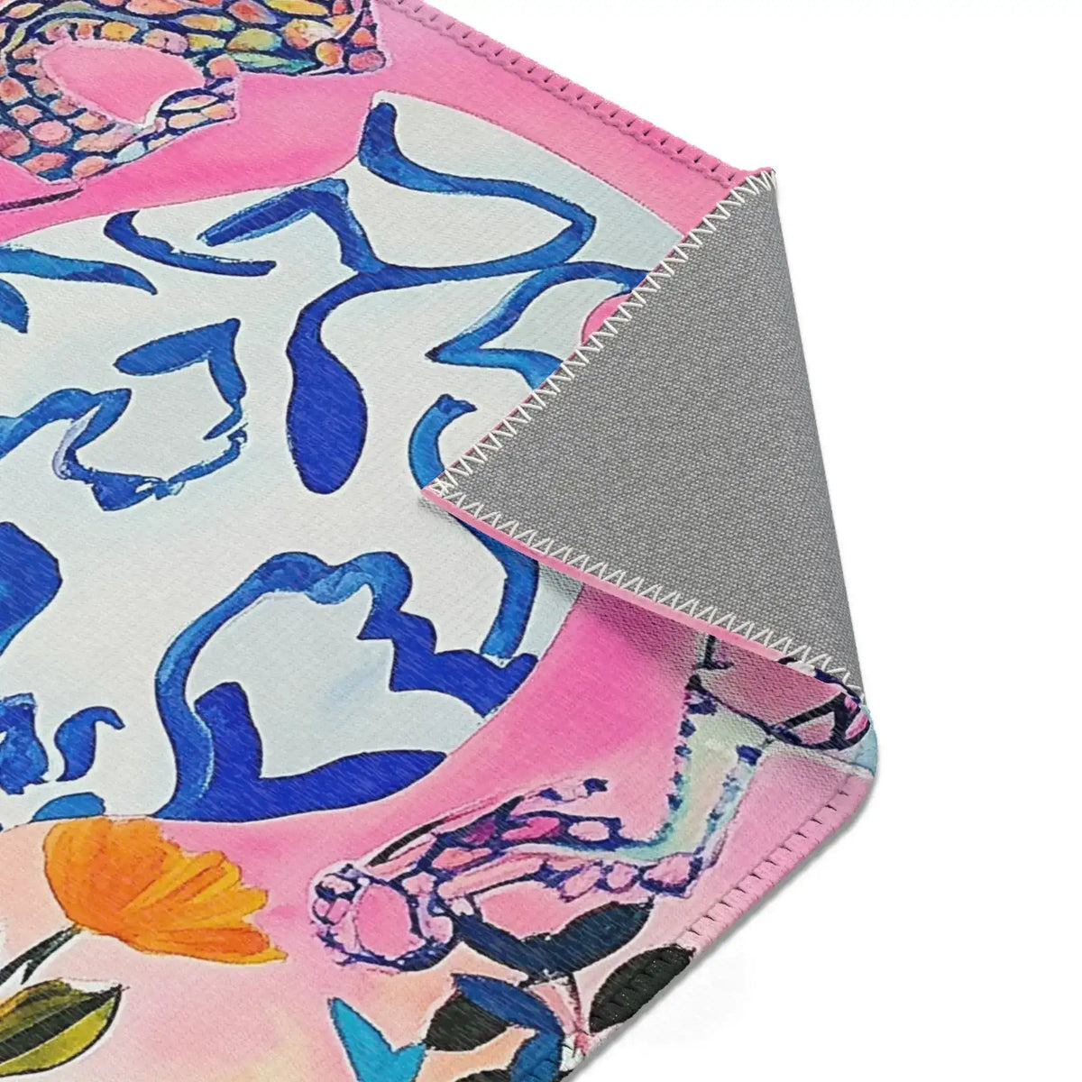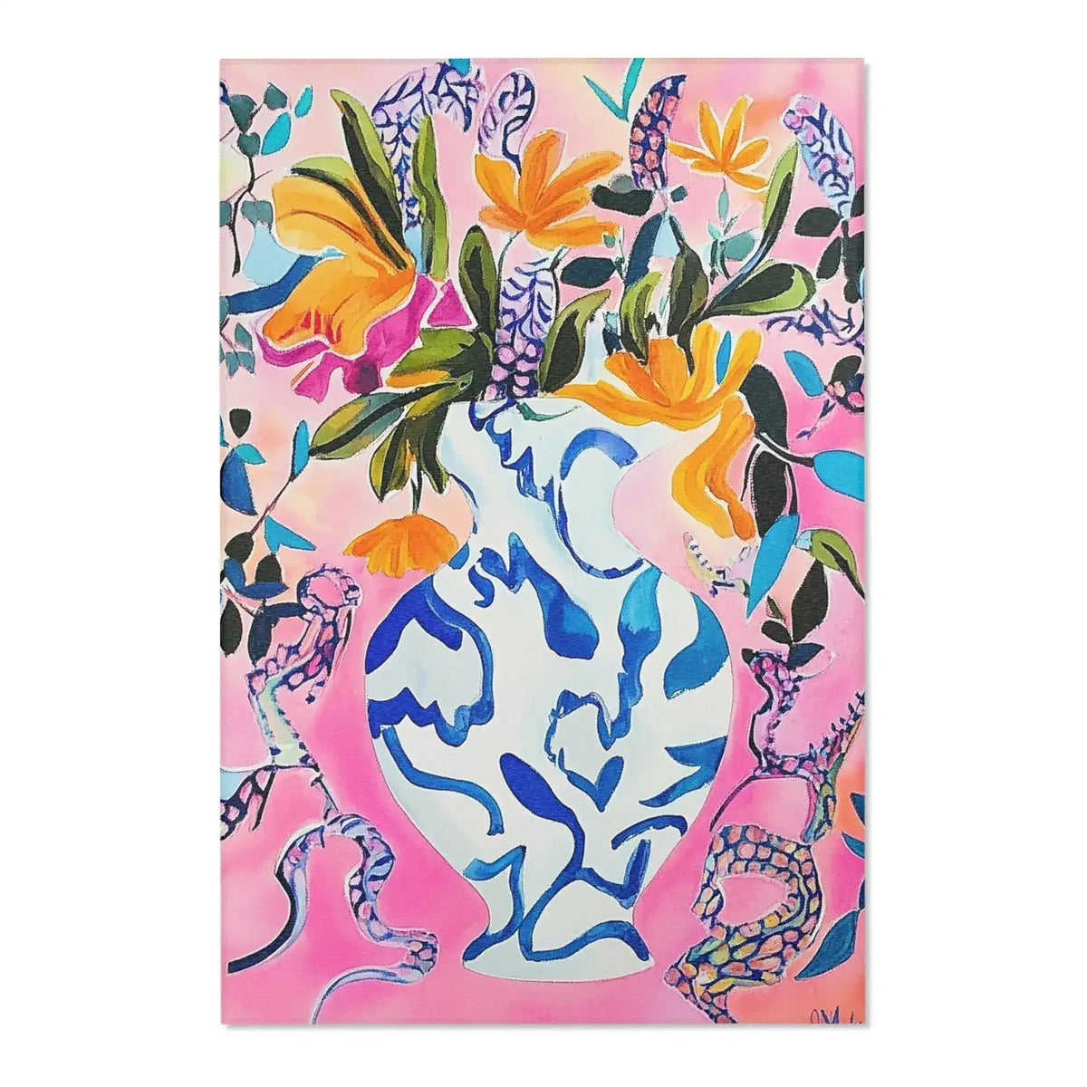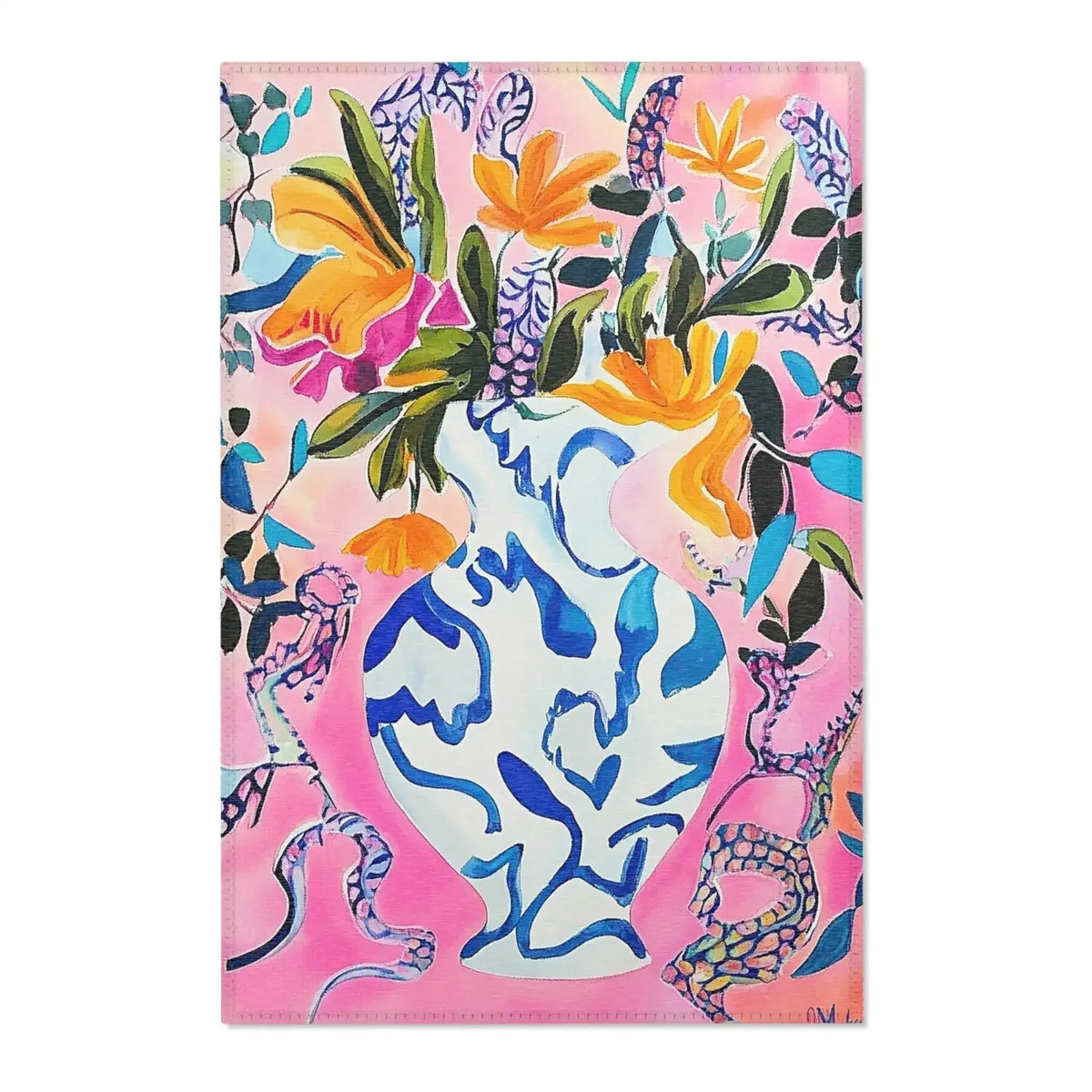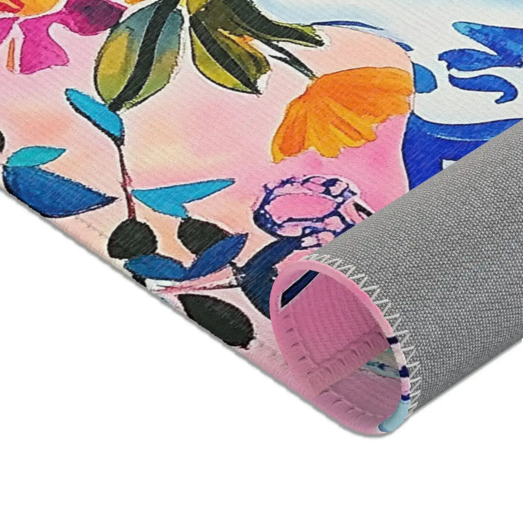Vibrant Floral Bouquet in Blue Vase Accent Rug