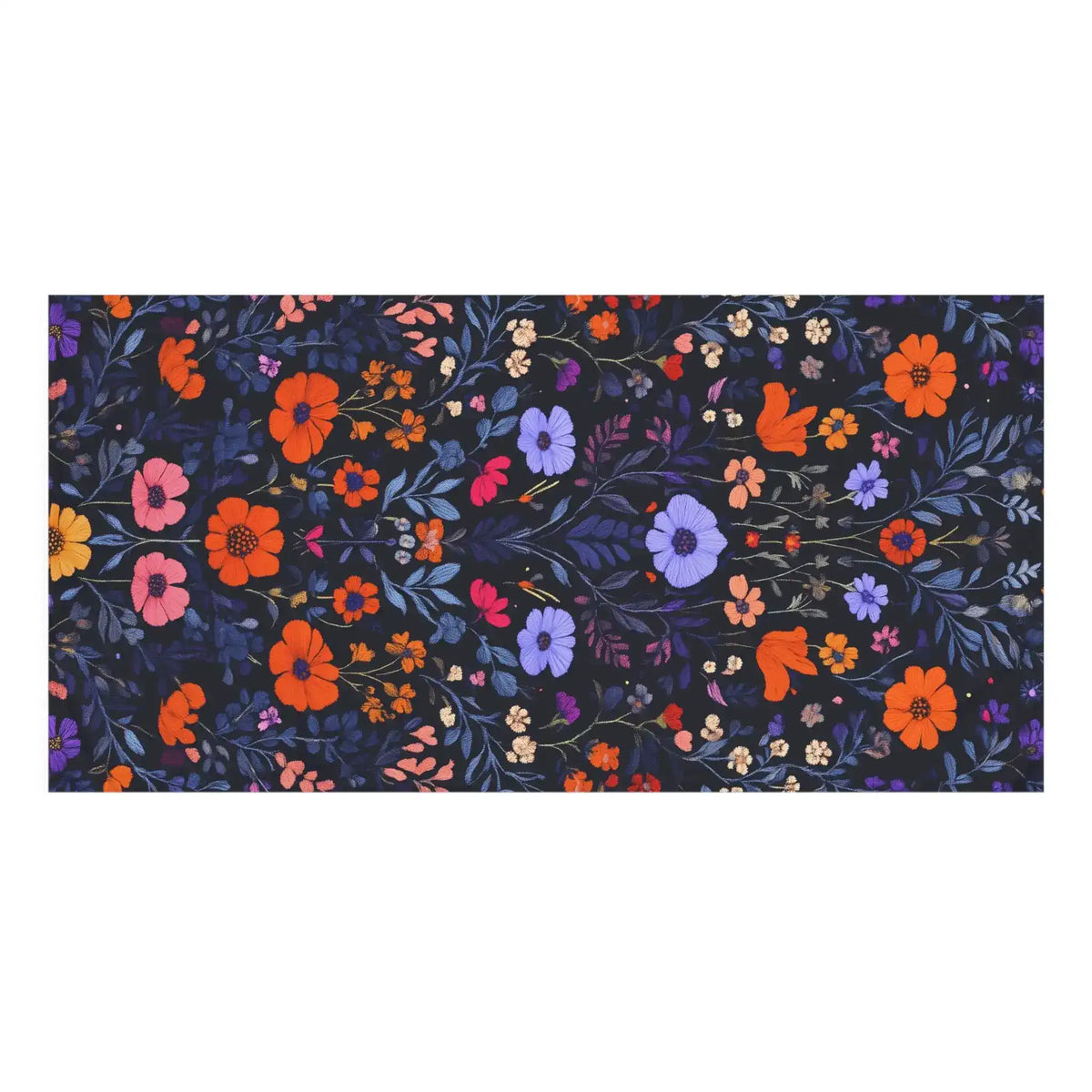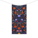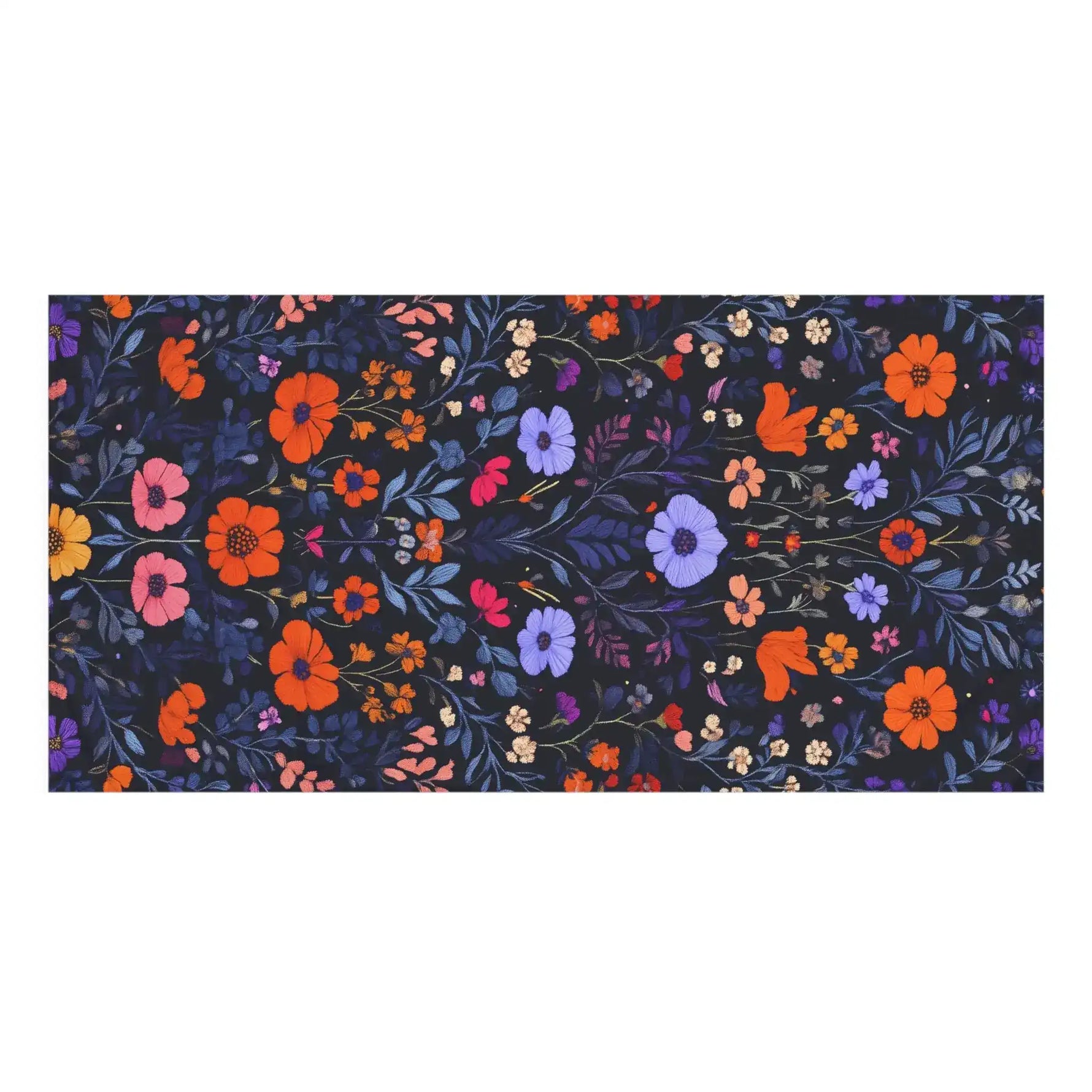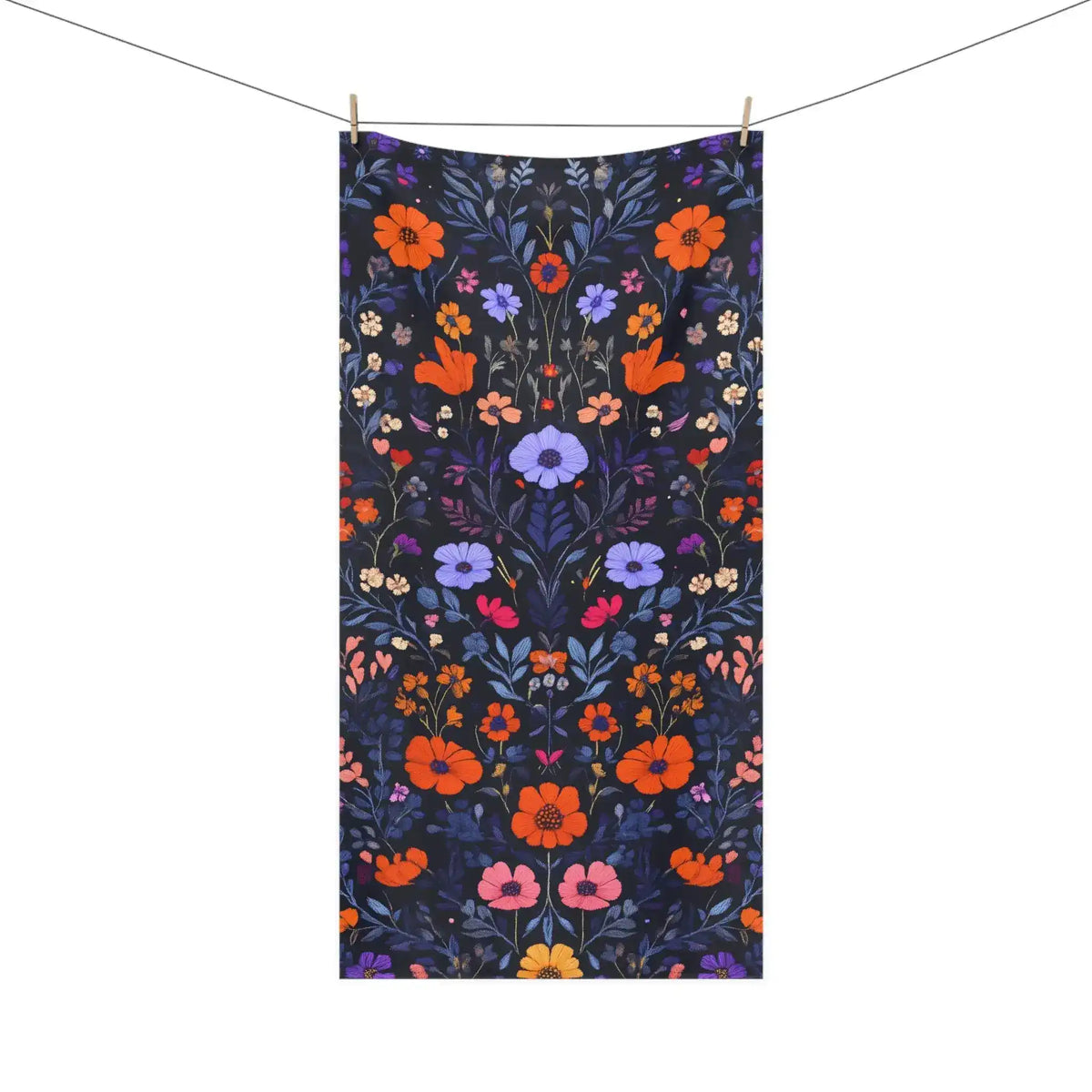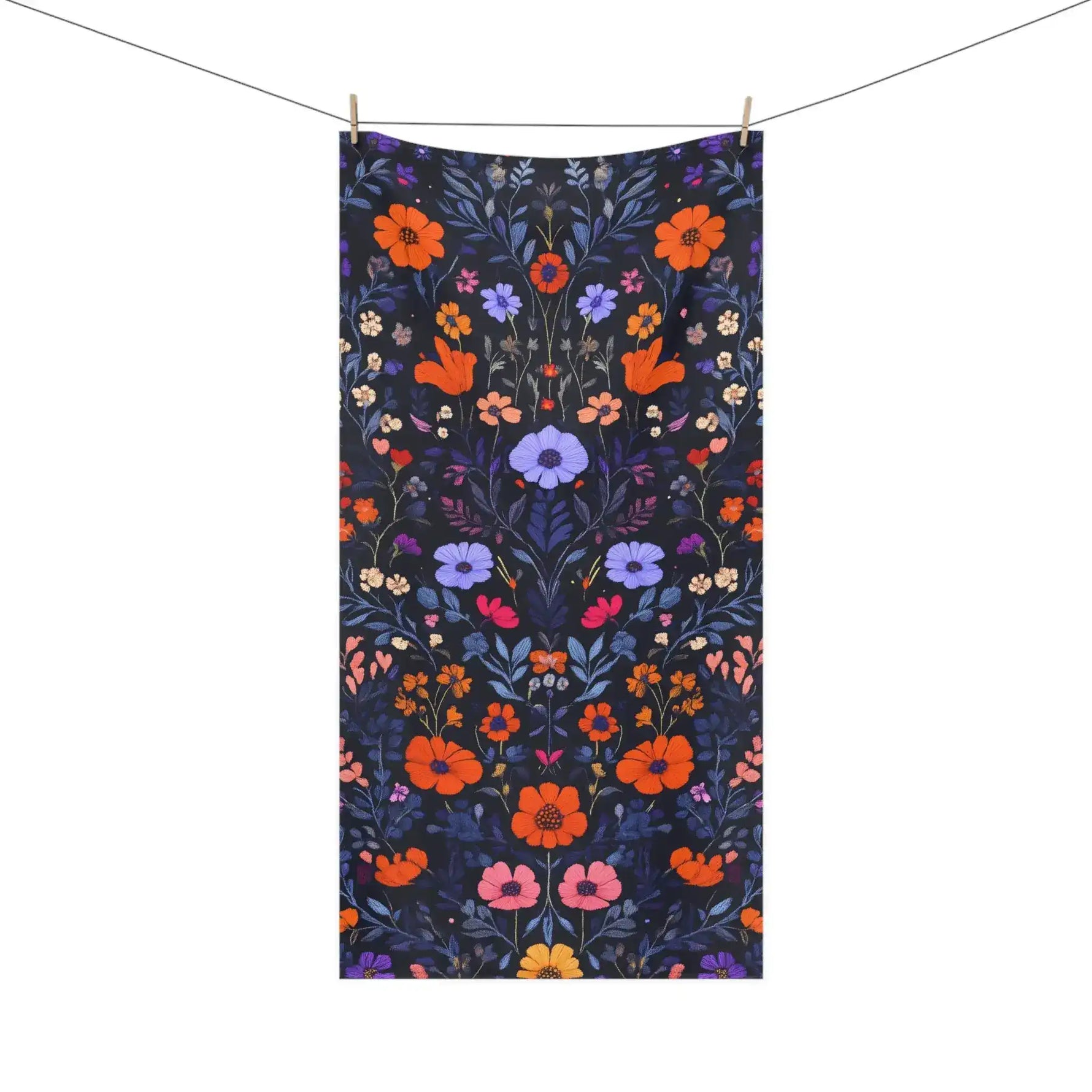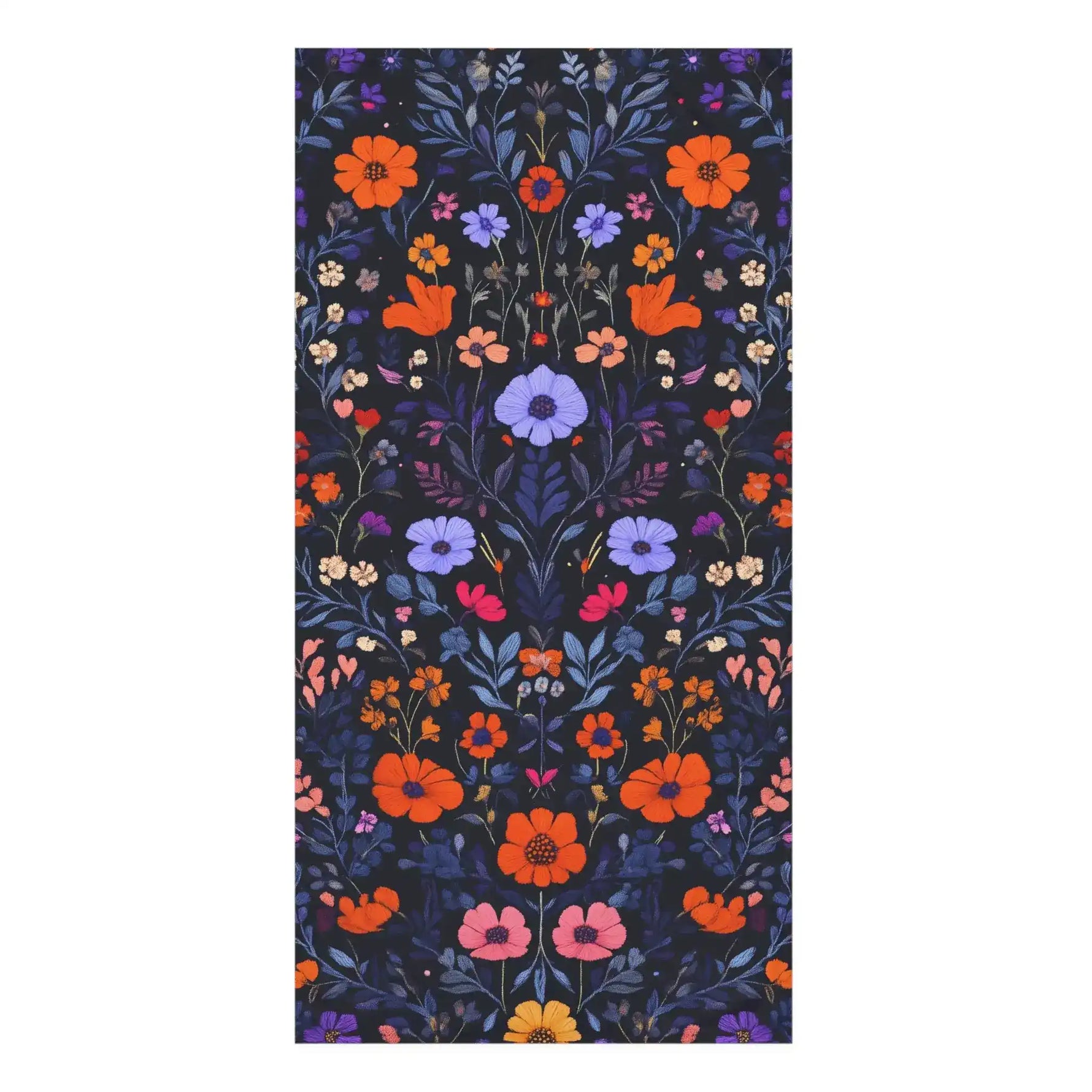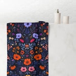 Vibrant Floral Embroidery on Dark Background Bath Towel