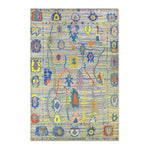 Vibrant Pastel Blue and Yellow Tribal Pattern Accent Rug