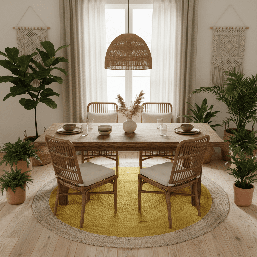 Beautify the space inside or outside your home with this classic Yellow Round Jute Rug. Choose from a variety of sizes to find the perfect addition to your space. Made from durable natural fibers, this rug is built to last and adds a touch of bohemian vibe wherever it is placed.