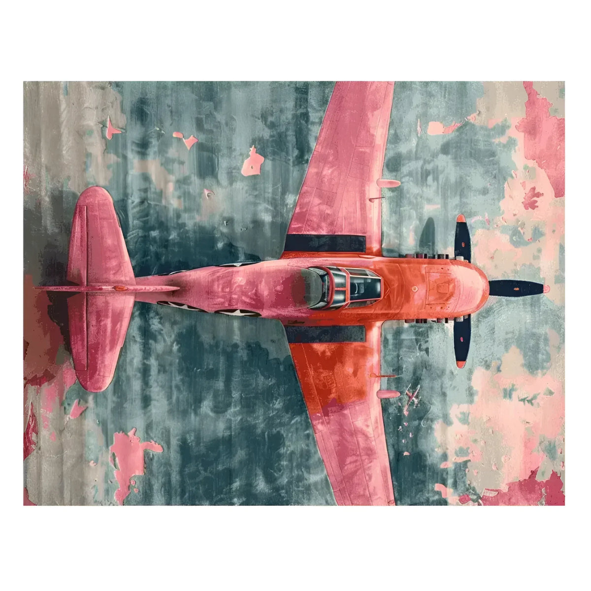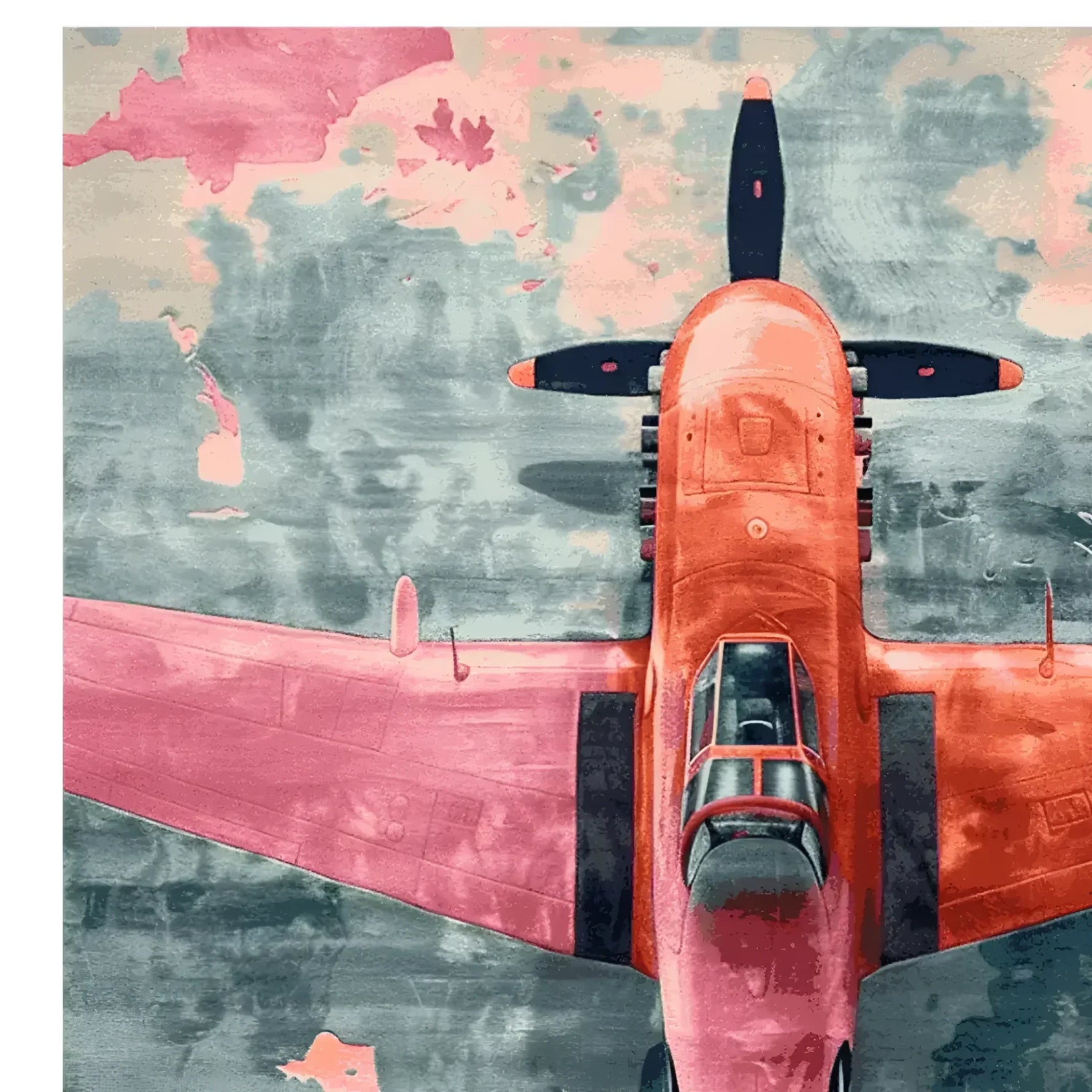 This lovely Aerial Reverie Hand Knotted Rug has a dramatic view of an old airplane from above. It makes you feel like you want to take off and fly. There is a beautiful contrast between the bright coral and deep blue colors, which mix old-fashioned style with modern art. It's a real showpiece in modern and industrial rooms thanks to its artistic, worn-down texture that gives it depth and personality. For people who like both adventure and style, this rug makes any room more lively and captivating to look at.