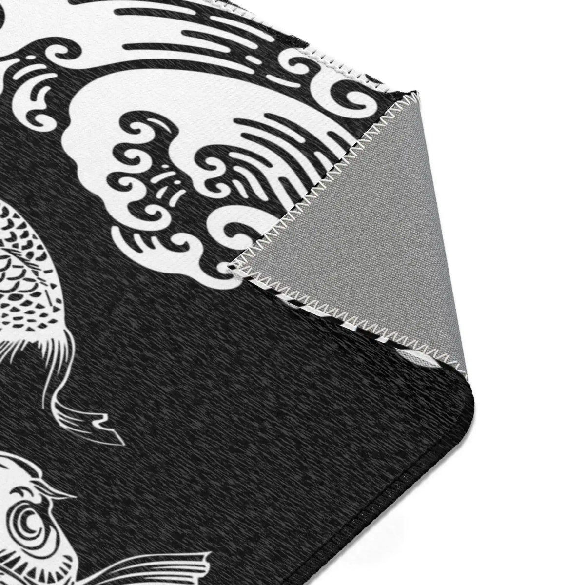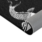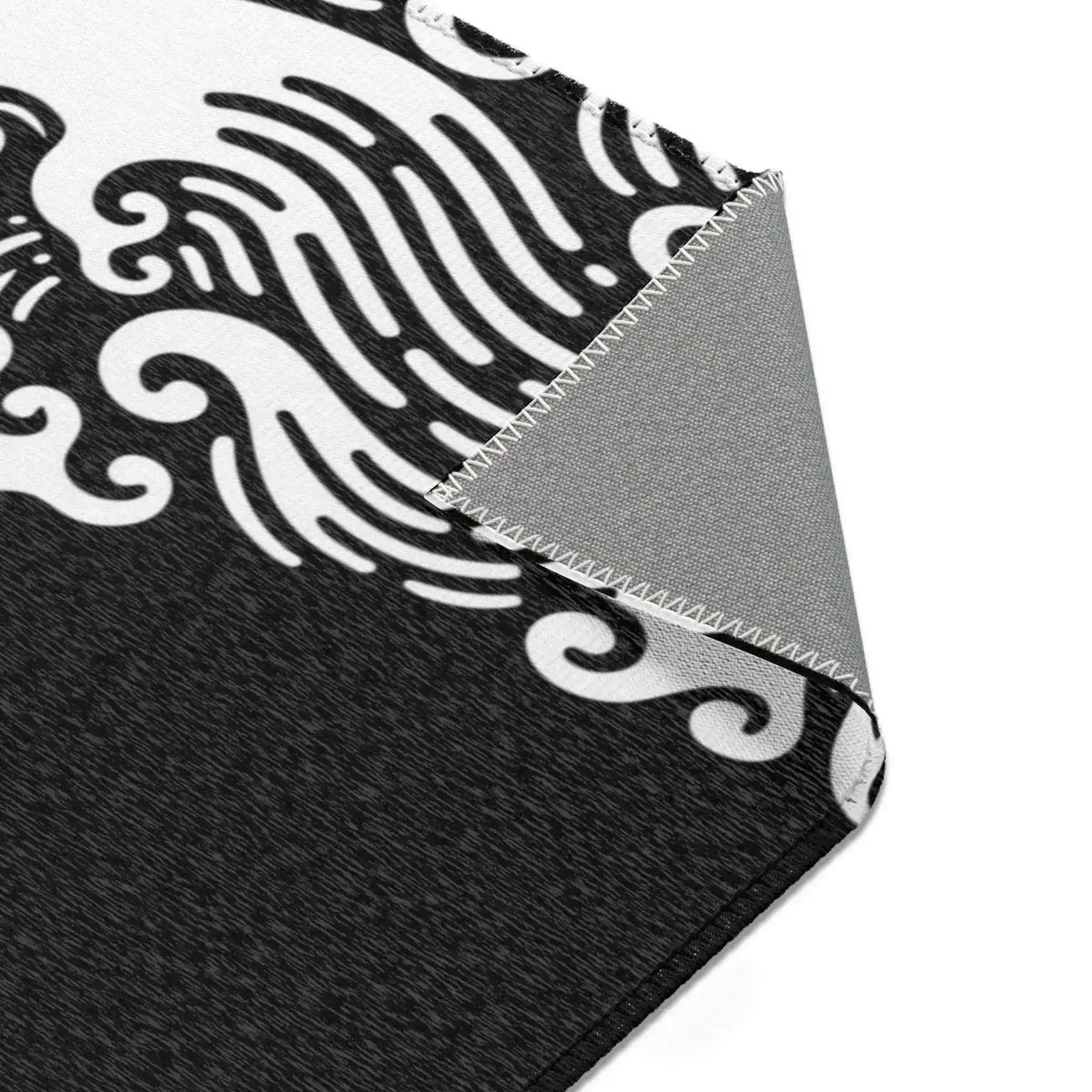 This accent rug features a bold, geometric sunburst design in black, red, and beige. The pattern radiates energy and vibrance, making it a striking addition to any room. The contrasting colors and dynamic shapes create a visually captivating piece that effortlessly enhances modern and artistic home decor.