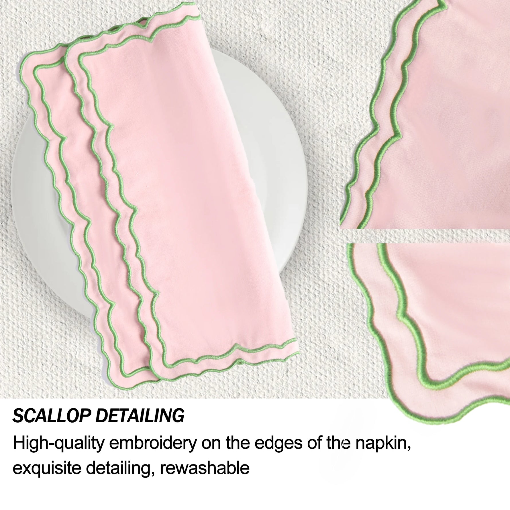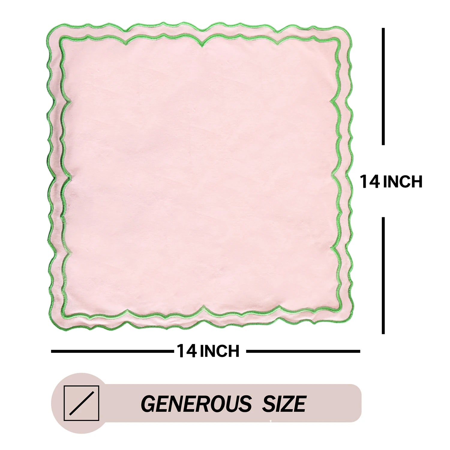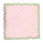 Add a playful, chic touch to your table with the Maia Homes Blush & Mint Scalloped Placemat. Crafted from 100% cotton, this beautiful mat features a unique scalloped border in a fresh mint green, perfectly outlining the soft blush pink center. It's a fun yet sophisticated statement piece for any dining occasion.