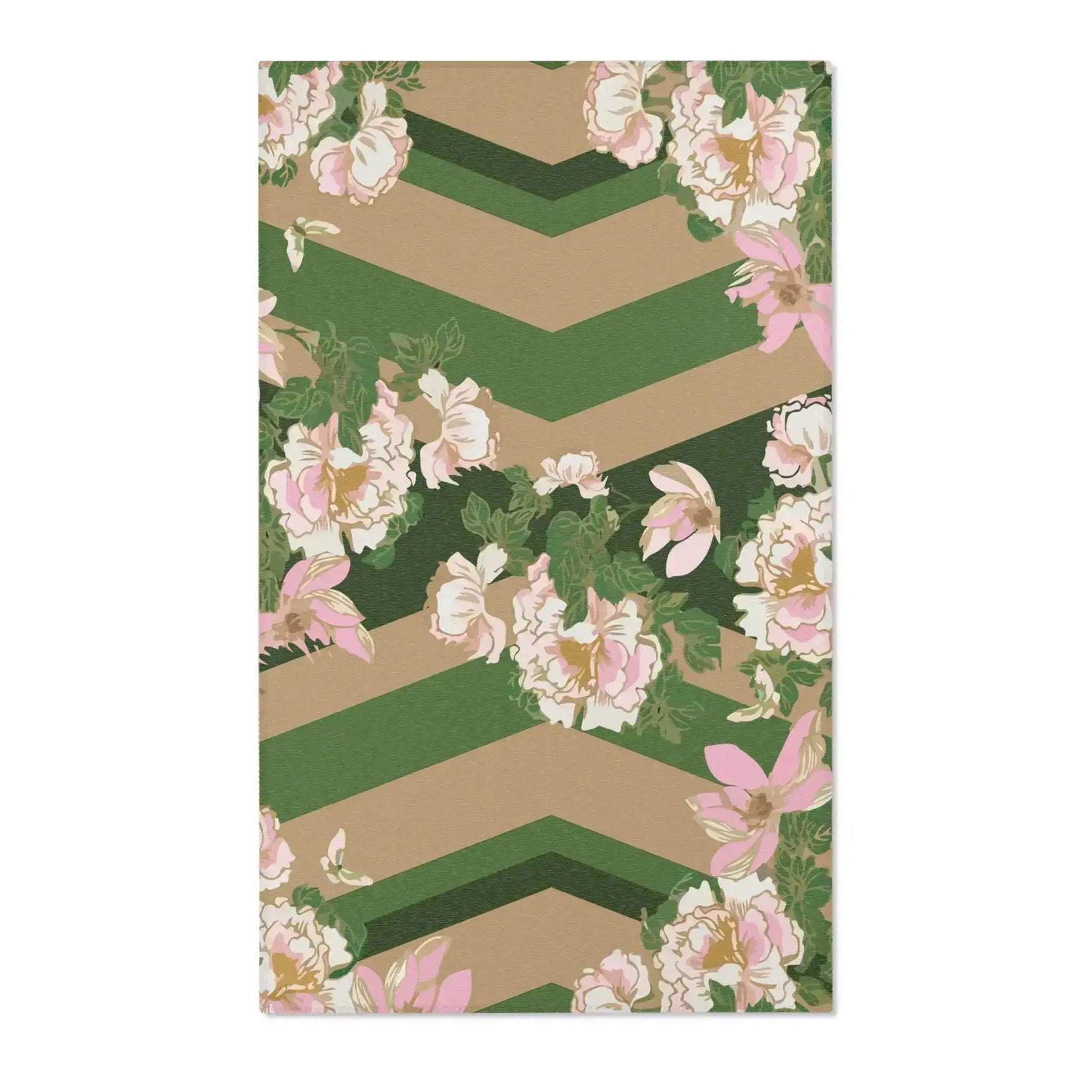 Blush Peonies on Forest Chevron Accent Rug