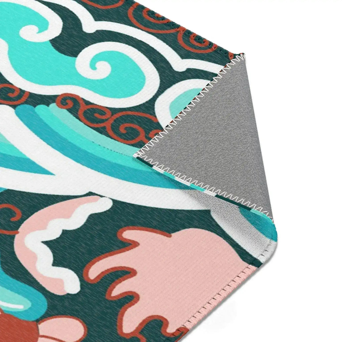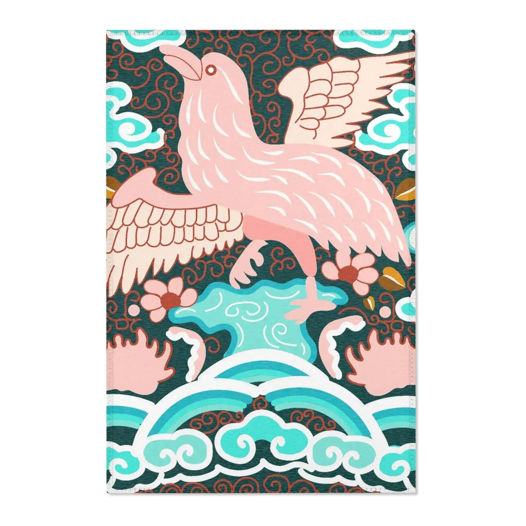 Blush Phoenix Over Turquoise Waves Accent Rug