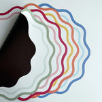 These elegant wavy placemats with a ripple edge are designed to bring a touch of sophistication to your dining table. Featuring a subtle two-tone design, they come in a variety of tasteful color options, including soft sage green and a vibrant berry pink. There are no creatures or figures on this design, allowing its graceful shape and delicate pattern to take center stage. These placemats perfectly complement both modern minimalist and classic decor styles.