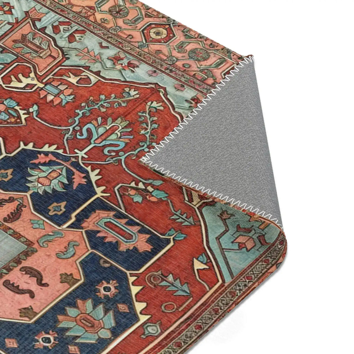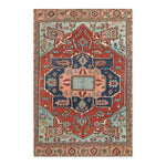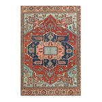This accent rug features a bold, geometric sunburst design in black, red, and beige. The pattern radiates energy and vibrance, making it a striking addition to any room. The contrasting colors and dynamic shapes create a visually captivating piece that effortlessly enhances modern and artistic home decor.
